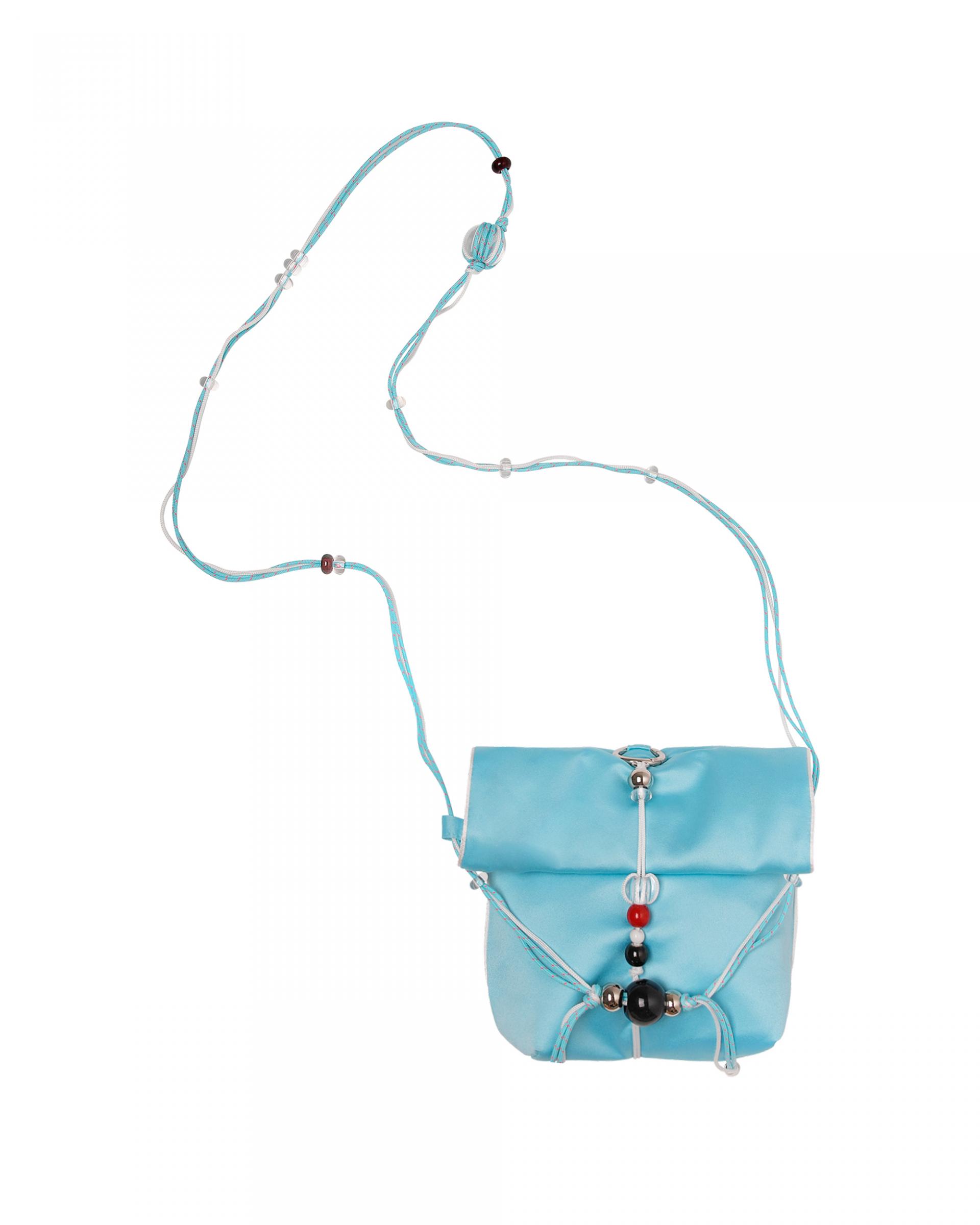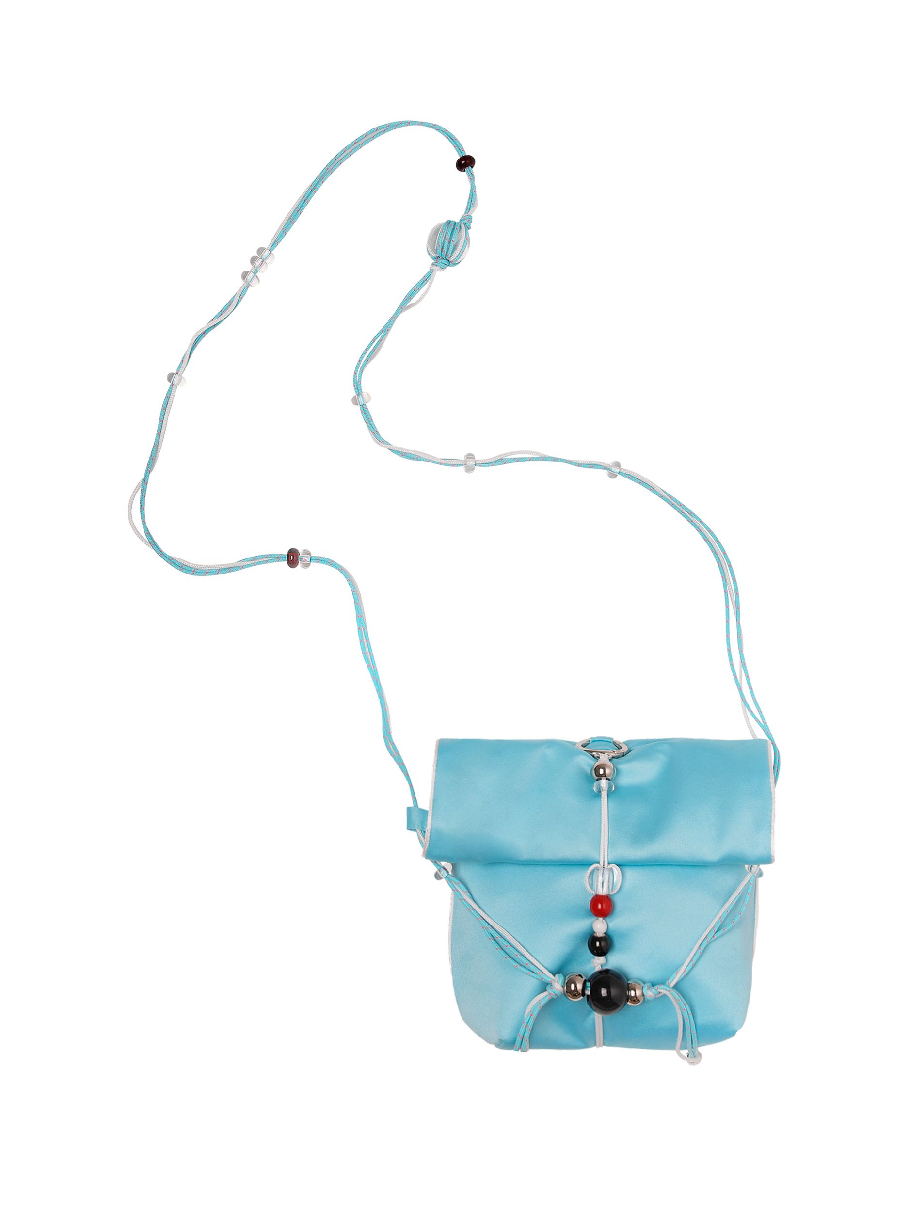 스트링과 구슬 디테일이 가득한 온 주머니 백