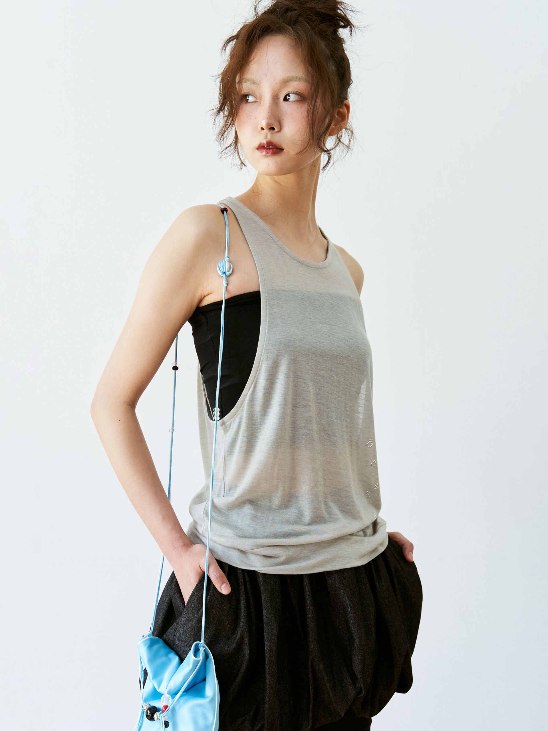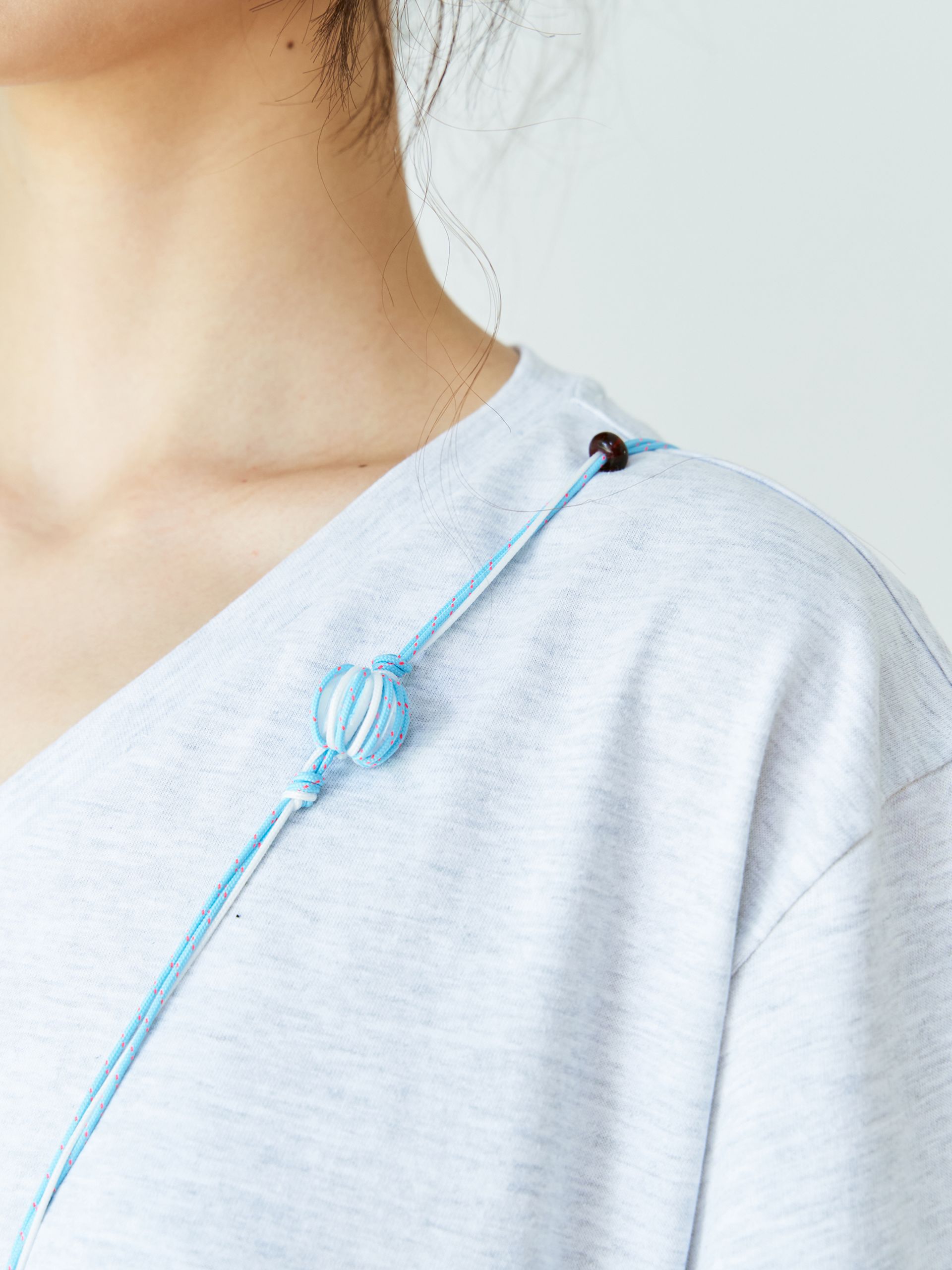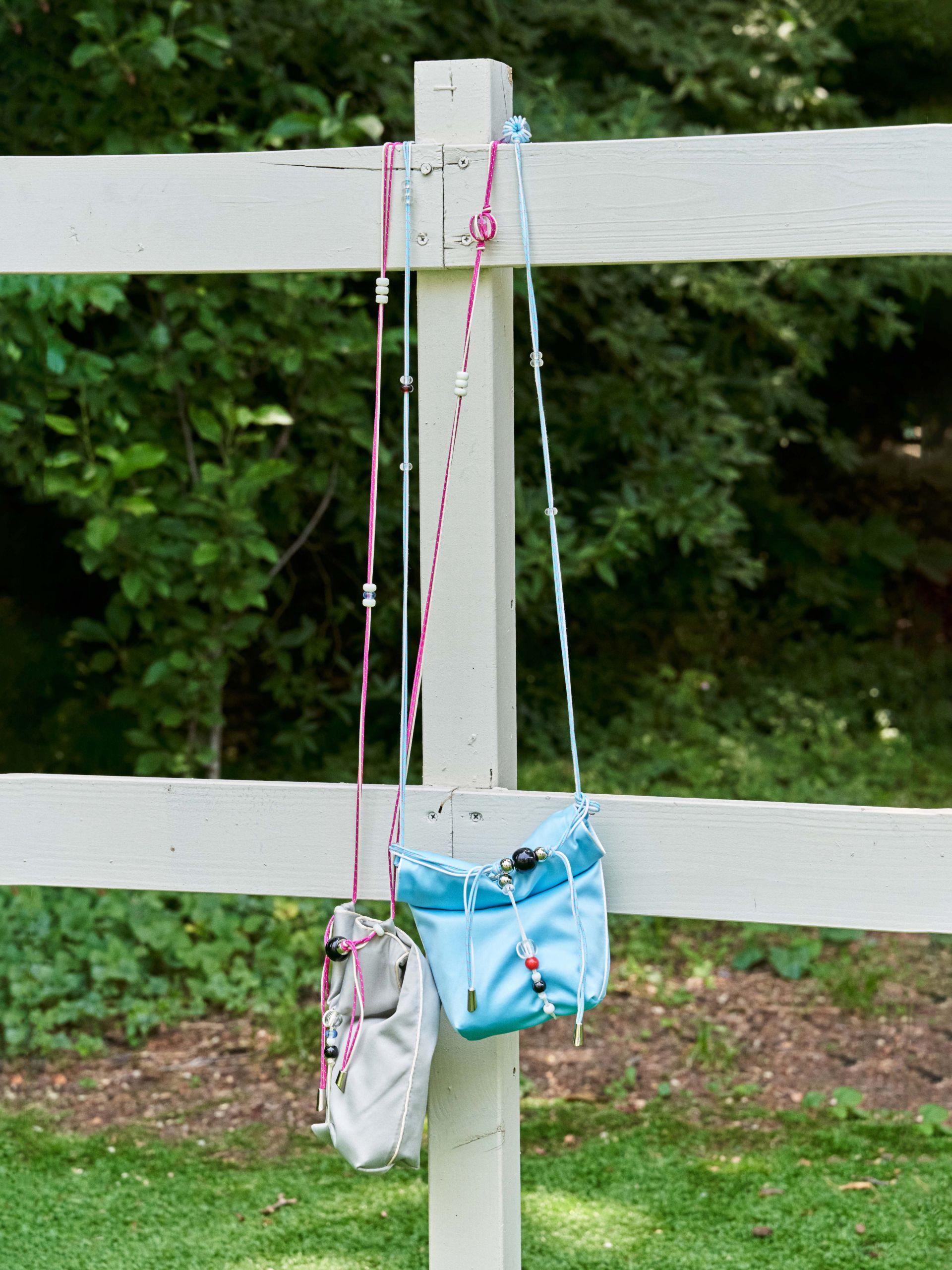 스트링과 구슬을 활용해 온스카의 시그니처 감성을 담은 미니백입니다. 스트링의 활용 방식에 따라 크로스백, 도트백으로 활용할 수 있으며 참 장식을 이용해 여밈 방식에 디테일을 더할 수 있는 재미있는 제품입니다. 스트링과 참은 100% 핸드메이드이며 그레이, 차콜, 민트, 멜론 총 4가지 컬러로 출시되어 컬러마다 특징있는 무드를 강조할 수 있는 끈과 구슬 디테일을 담았습니다.