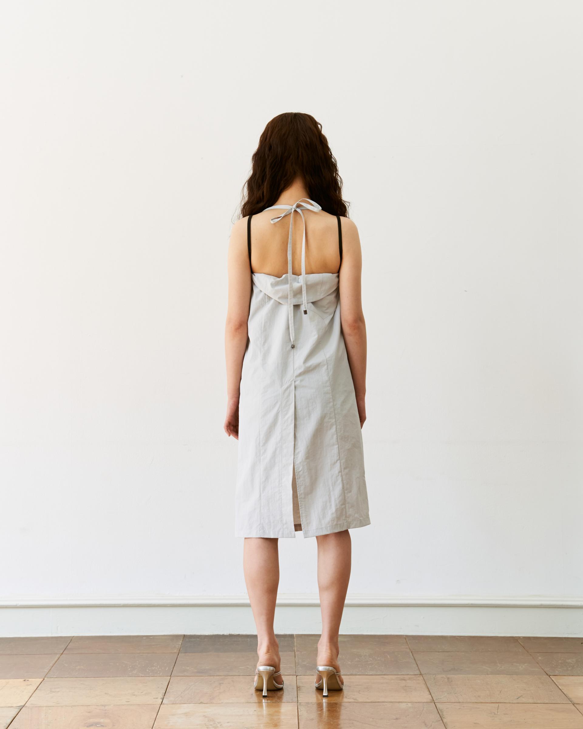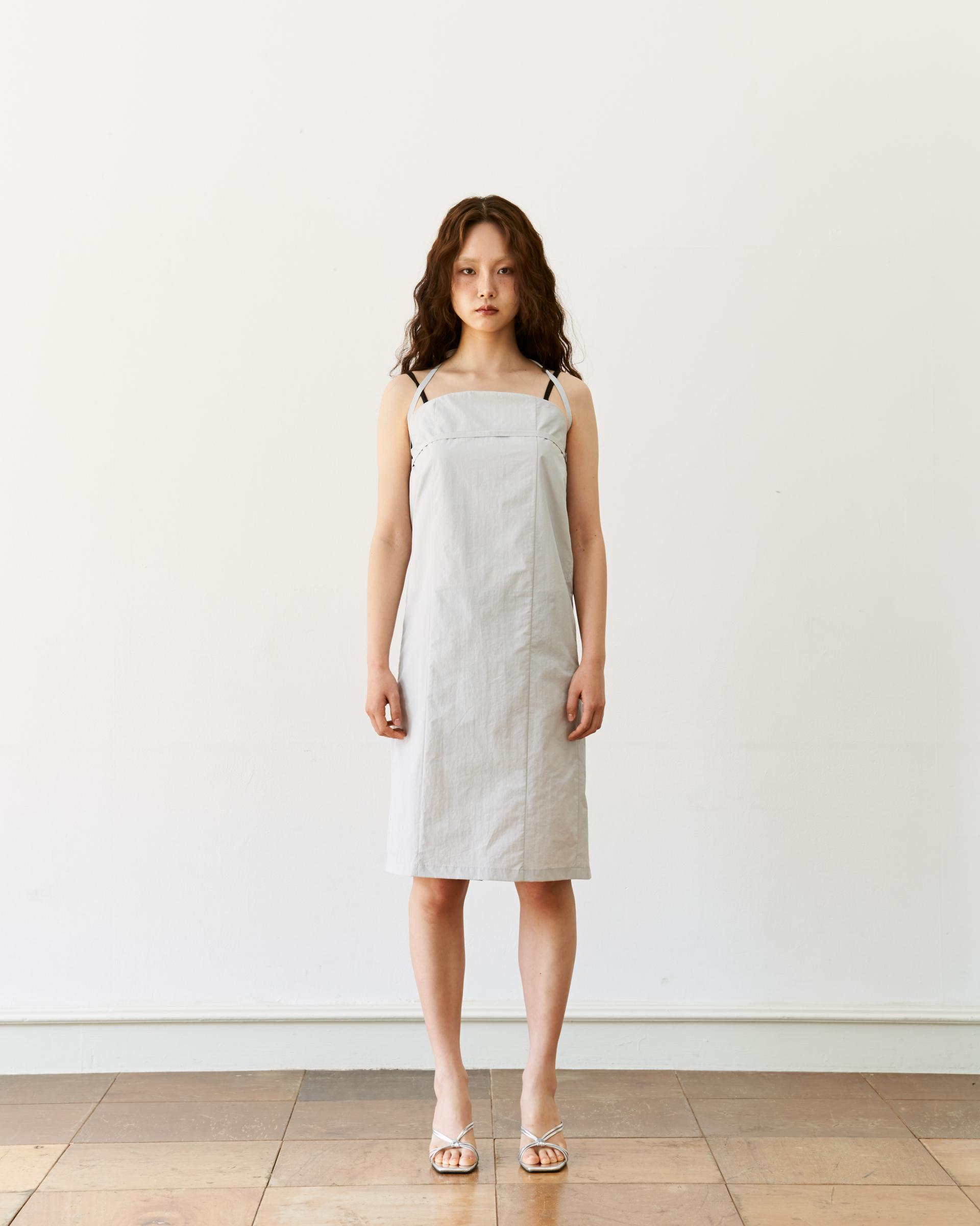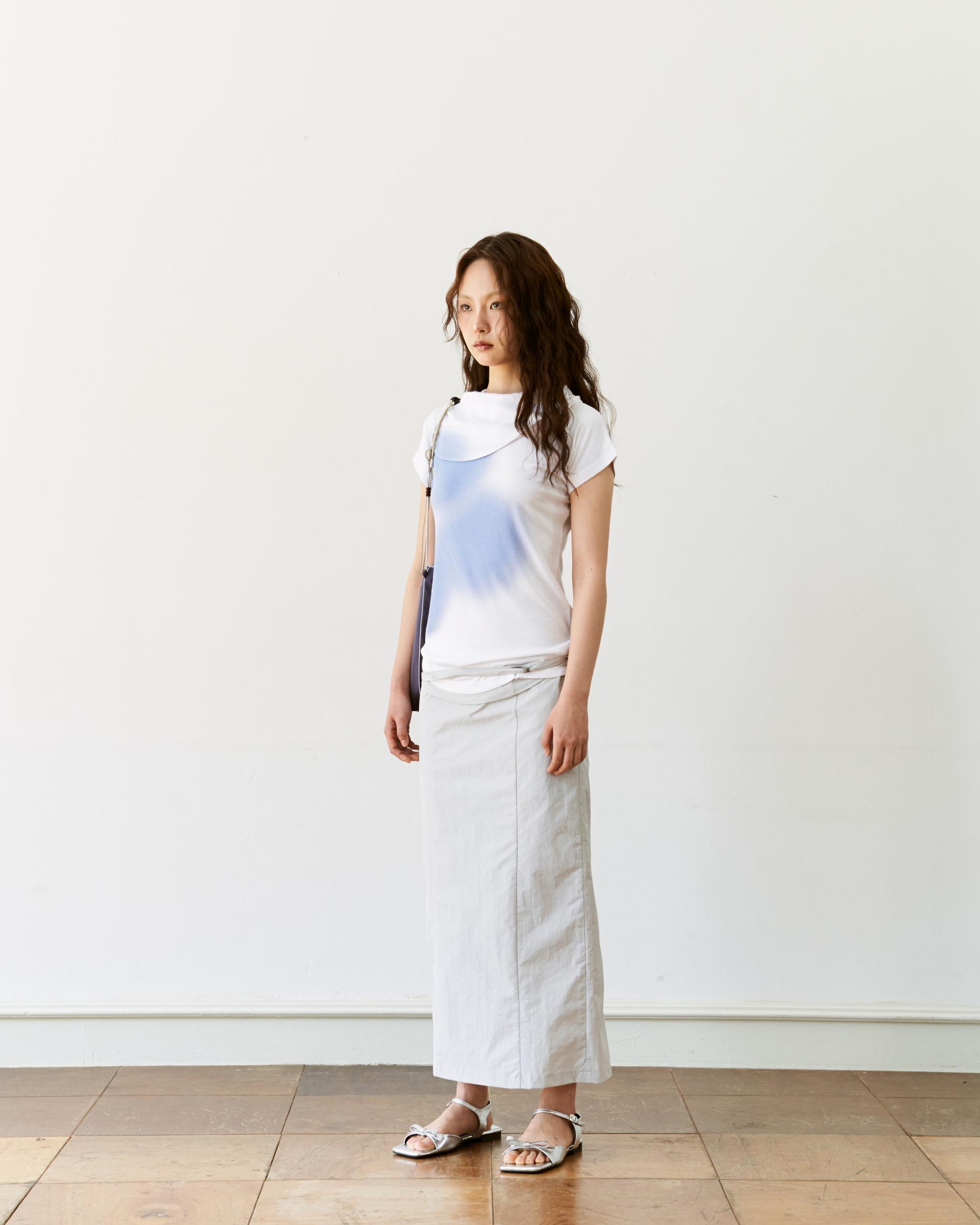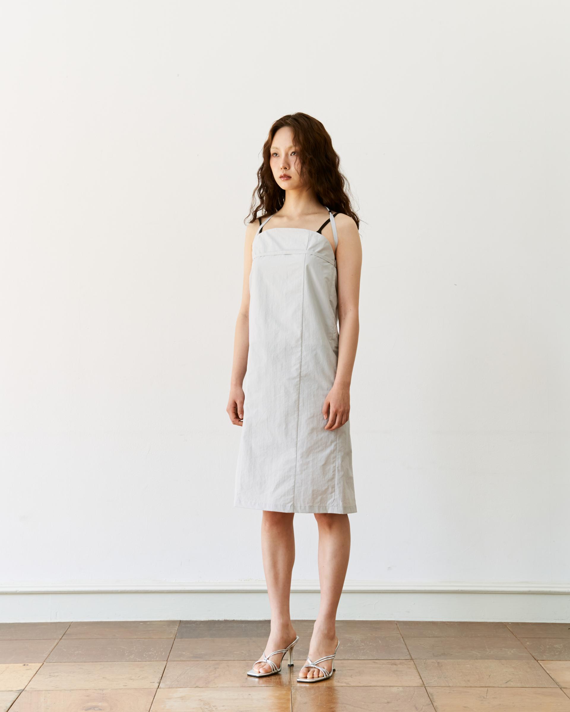 90cm의 롱한 기장의 맥시 스커트 입니다. 몸 전체를 지나는 절개 라인으로 허리와 엉덩이 라인을 잡아주고 발목까지 일자로 떨어지도록 디자인 되었습니다. 힙을 덮는 안단으로 비침을 잡아주며 골반에서 시작되는 로우 웨이스트로 제작되었습니다. 길이가 다른 두 개의 스트링을 활용해 리본을 묶어 롱스커트로 연출 할 수 있으며 목 뒤로 둘러 원피스 형태로 활용할 수 있는 두가지 스타일링이 가능합니다.