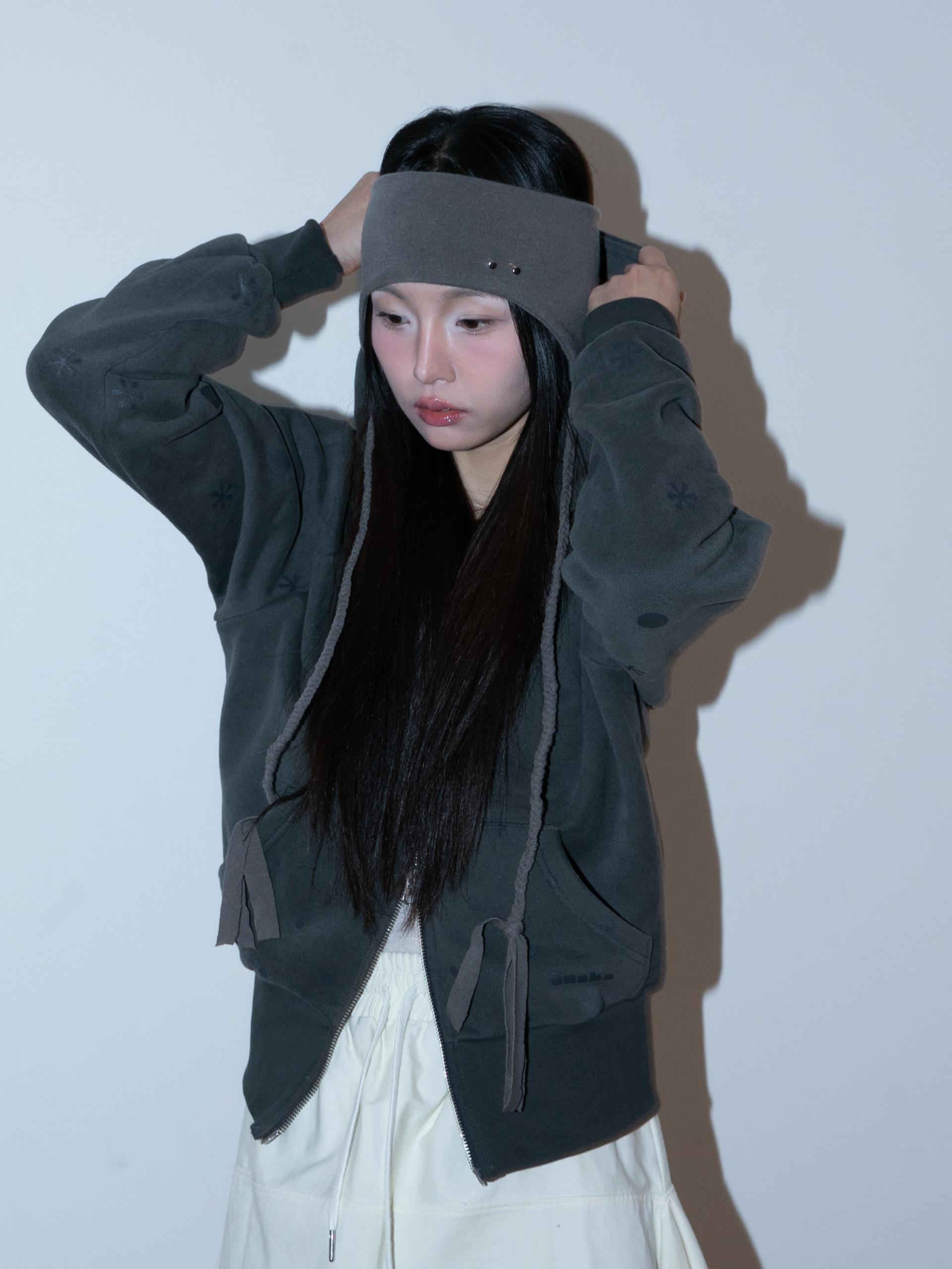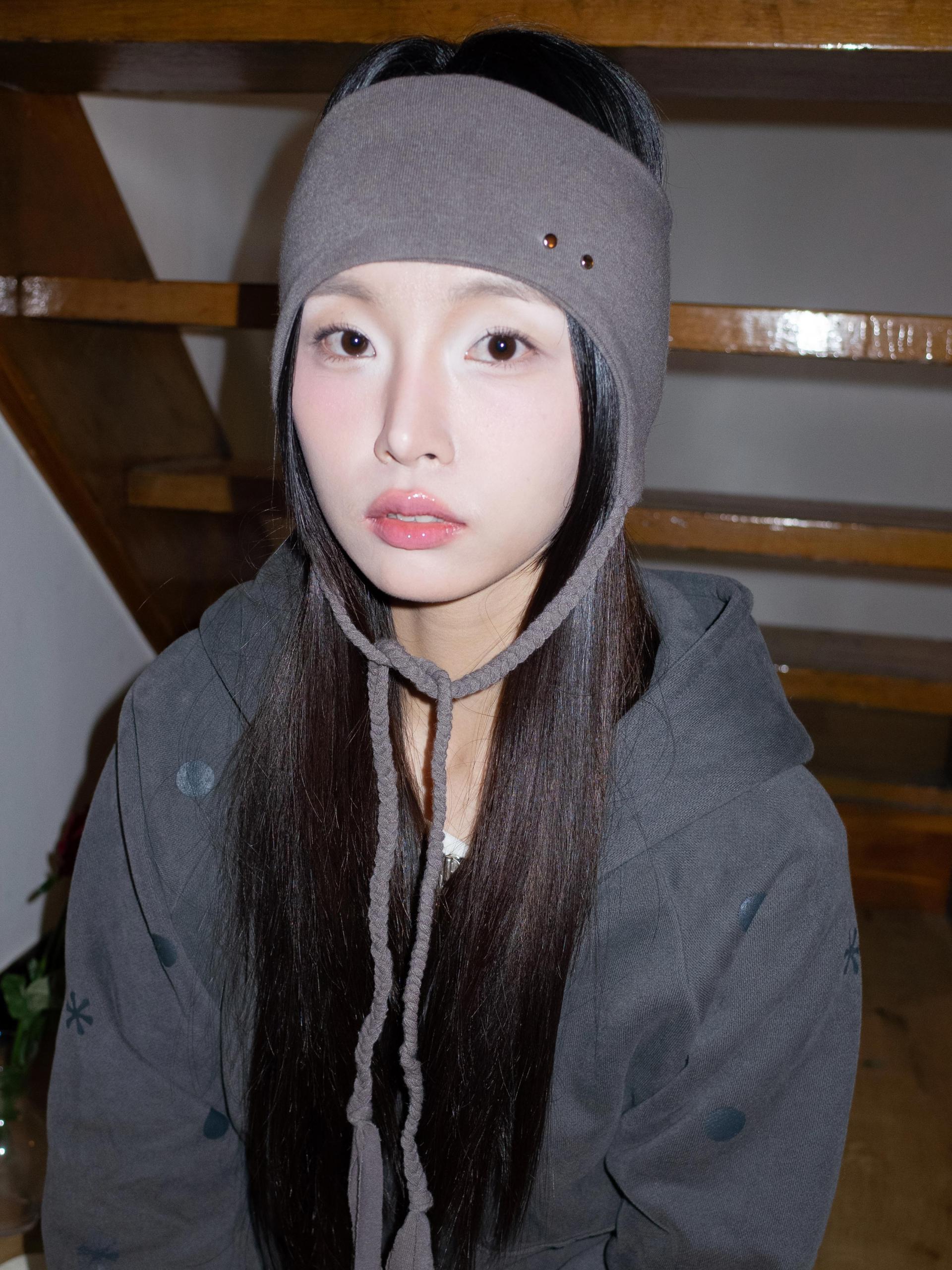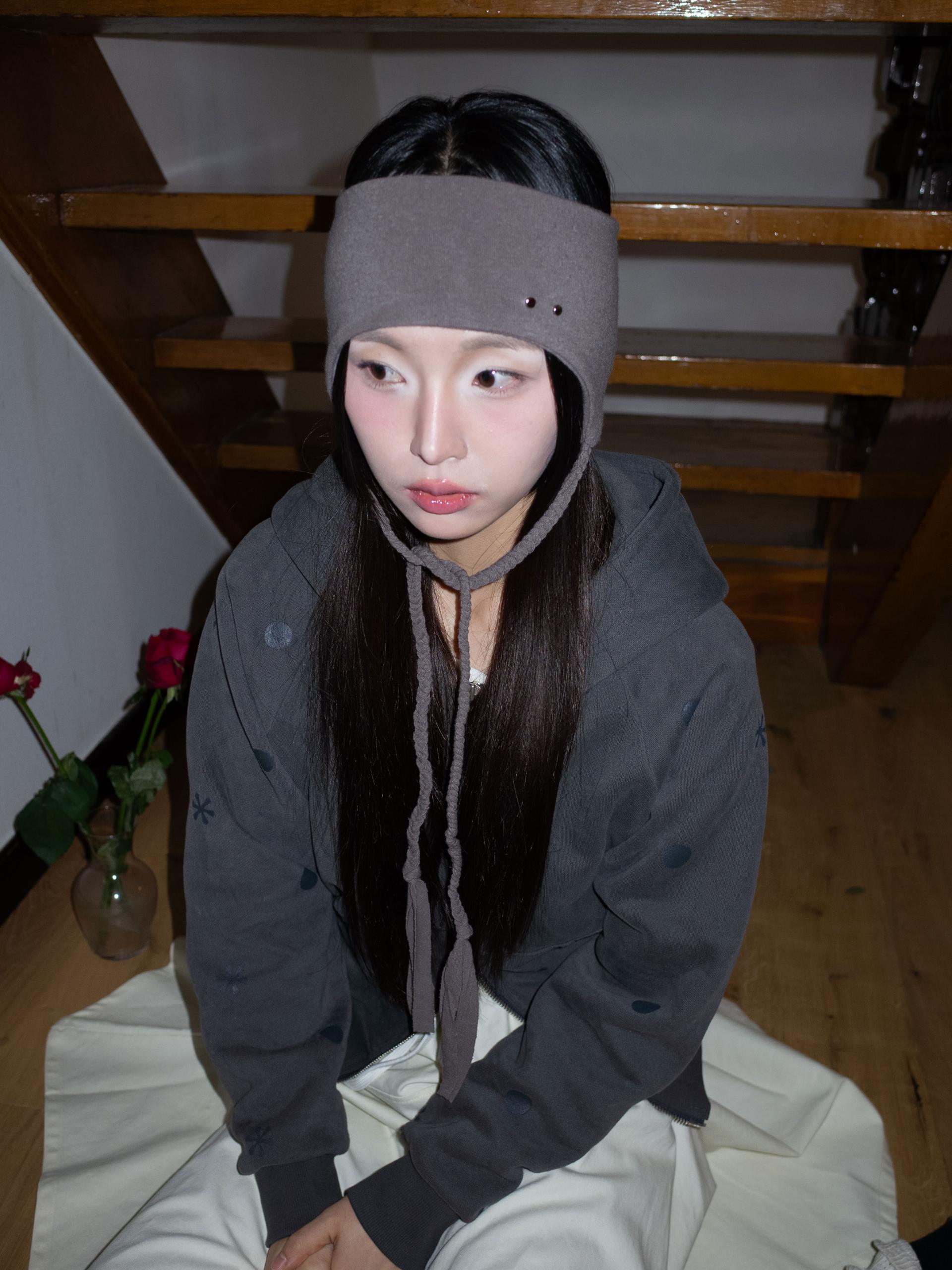 아크릴과 울이 혼합된 부드러운 터치감의 원단으로 땋은 스트링과 자연스러운 곡선으로 귀를 덮어주는 이어플랩 디자인이 돋보이는 헤어밴드입니다. 온스카의 시그니처 스터드가 포인트로 다양한 아웃핏에 활용할 수 있는 아이템입니다.