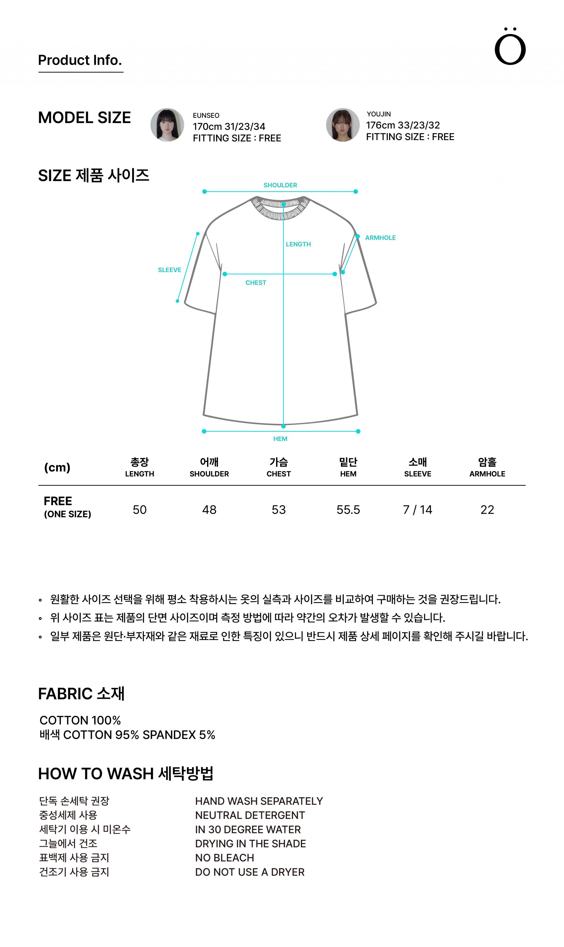 스트라이프와 솔리드 배색 원단을 조합한 더블소매에는 작은 단추 디테일이 있어 한 단 접어 짧게 연출할 수 있습니다. 온스카의 08 크랙 프린팅을 더해 다채로운 색감 조합을 보여주며, 골반 위에서 떨어지는 경쾌한 기장감으로 다양한 하의와 매치할 수 있습니다. 찰랑거리는 부드러운 원단과 다양한 컬러, 귀여운 디테일로 완성도를 높인 티셔츠입니다.