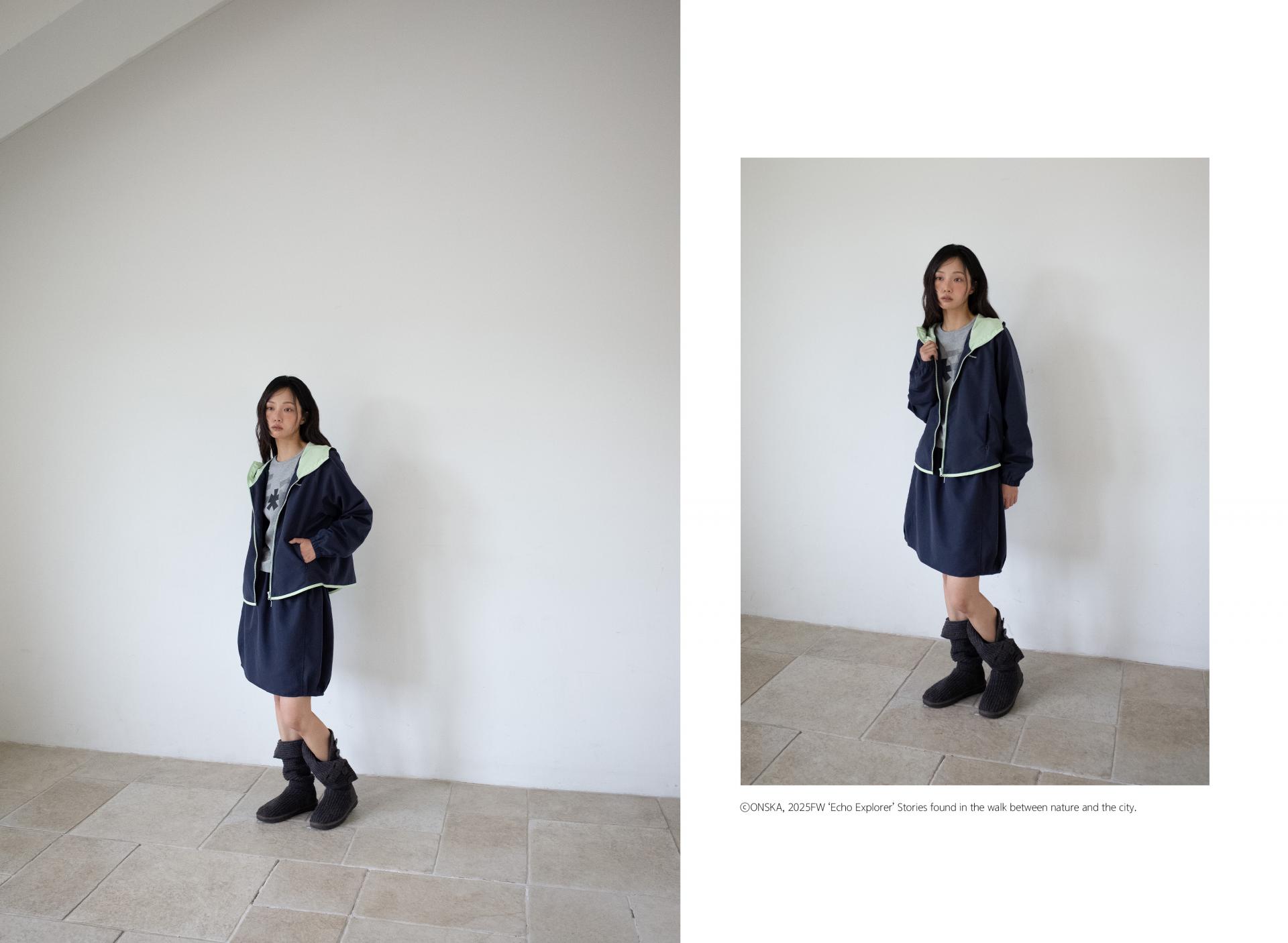 전체 안감을 메쉬로 마감해 보온성과 퀄리티를 높였으며 배색 디테일과 로고 자수, 후드 스터드으로 포인트를 주었습니다. 위에서 아래로 자연스럽게 퍼지는 A라인으로 귀여운 실루엣을 완성하며, 앞 밑단 기장 보다 긴 뒷 기장라인으로 뒷모습까지 안정감을 더했습니다. 앞 포켓은 지퍼로 마감해 소지품을 안전하게 보관할 수 있는 편하고 활동성 좋은 아우터로 추천드립니다.