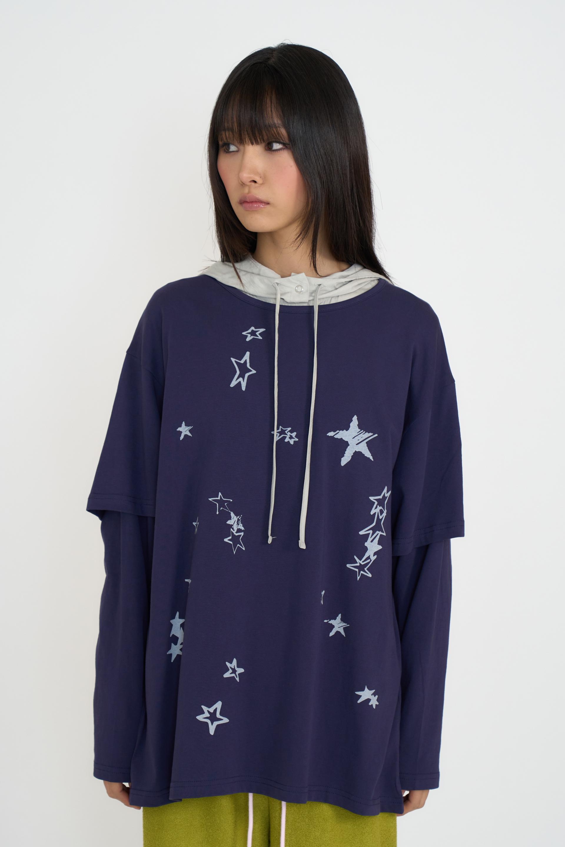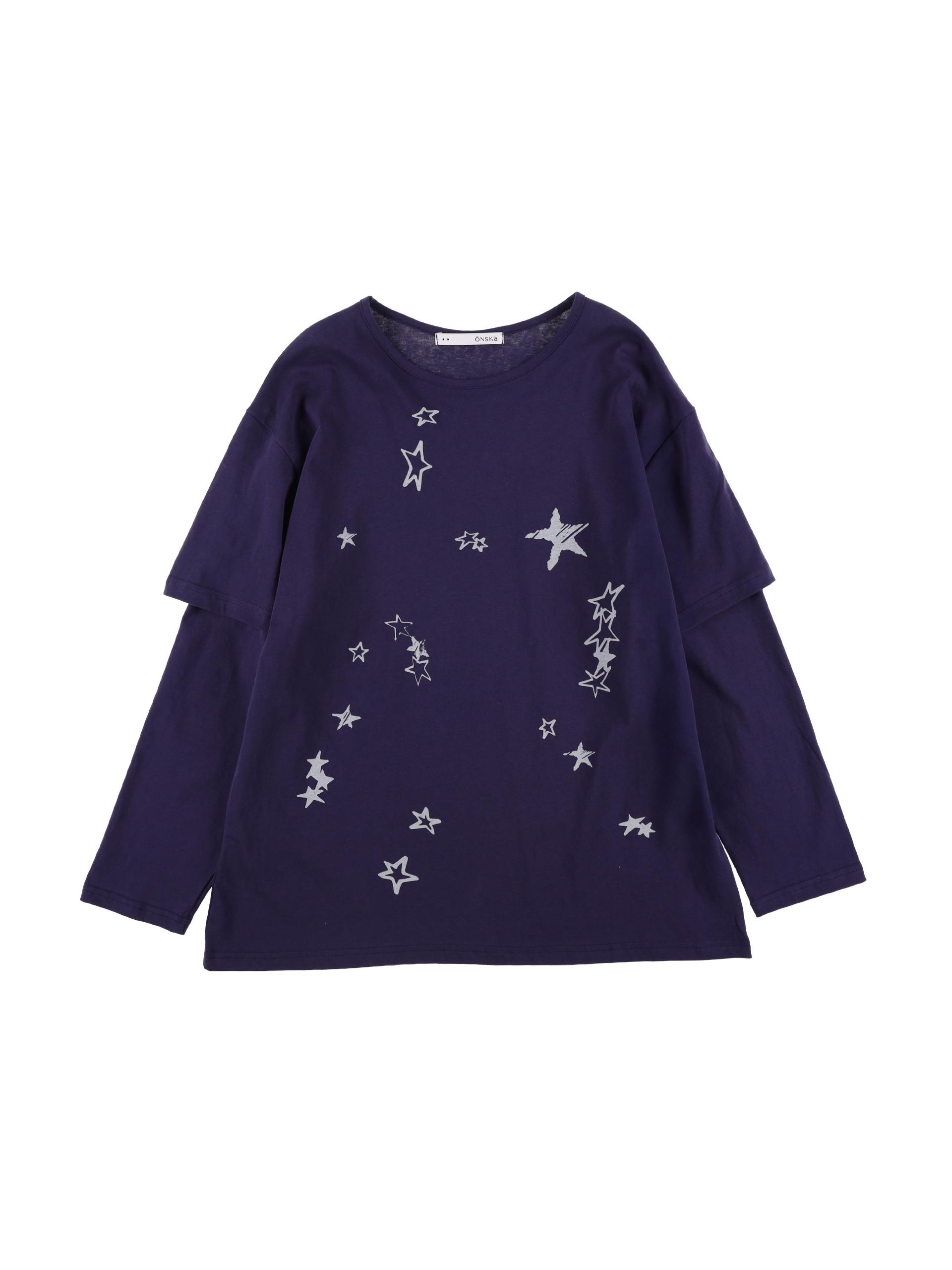 쏟아지는 별 그래픽 프린팅의 STARRY DOUBLE SLEEVE T