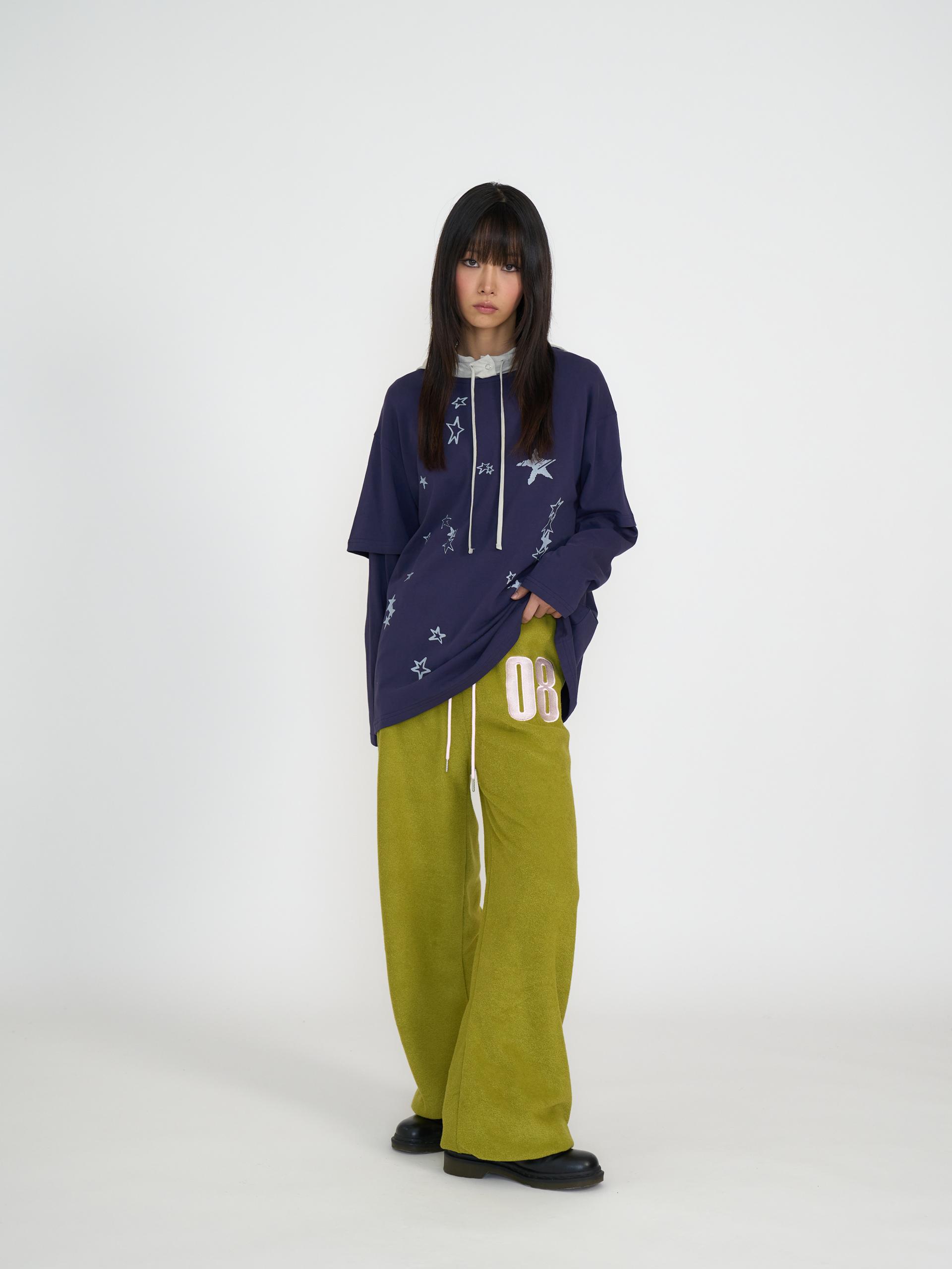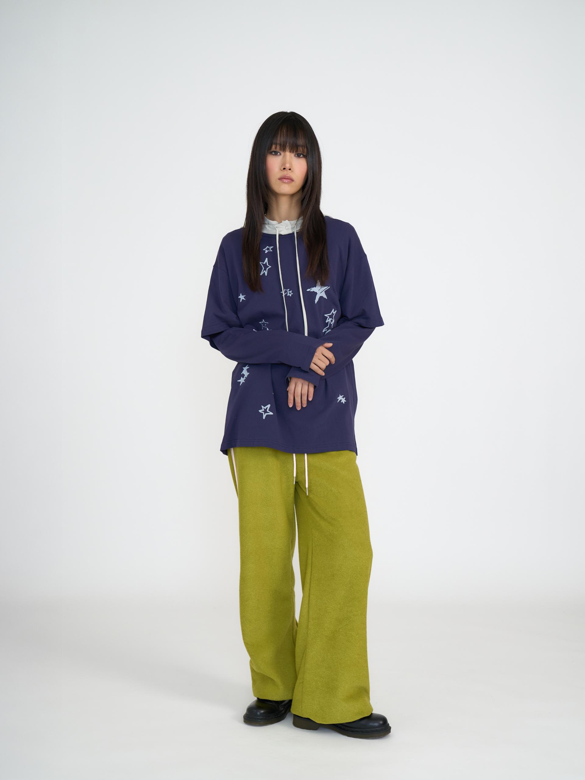 레이어드한 듯한 더블 슬리브 디자인과 별 그래픽이 포인트인 롱슬리브 티셔츠입니다. 뮤트한 톤의 면 원단과 은은한 그래픽으로 어디에나 자연스럽게 어울리는 아이템입니다. 넉넉한 박시핏과 견고한 해리 네크라인 처리로 편하게 착용 가능합니다. 은은한 별을 담은 미드나잇 블루, 부드러운 바닐라, 차분한 그린티 총 3가지 컬러로 출시되었습니다.