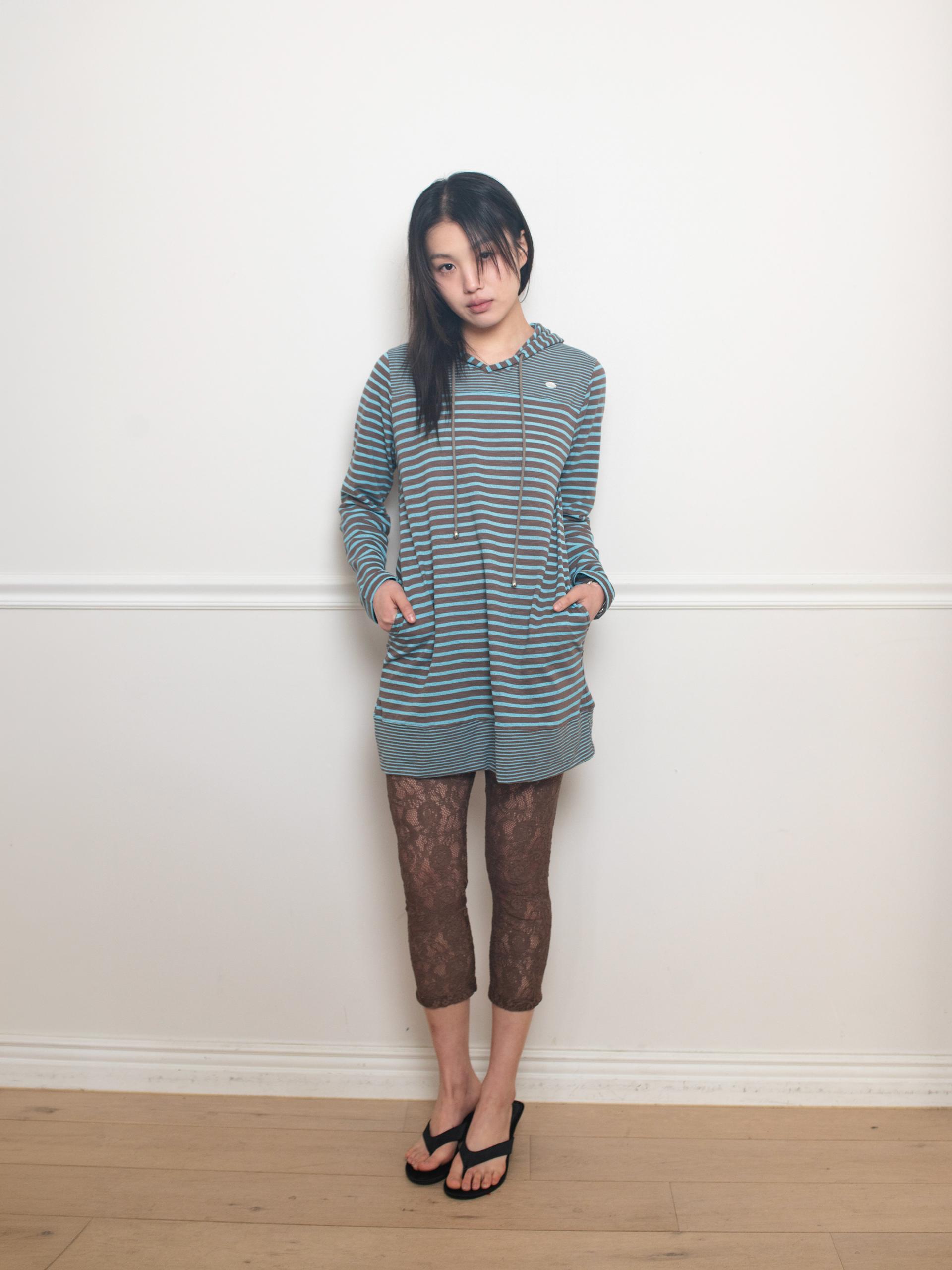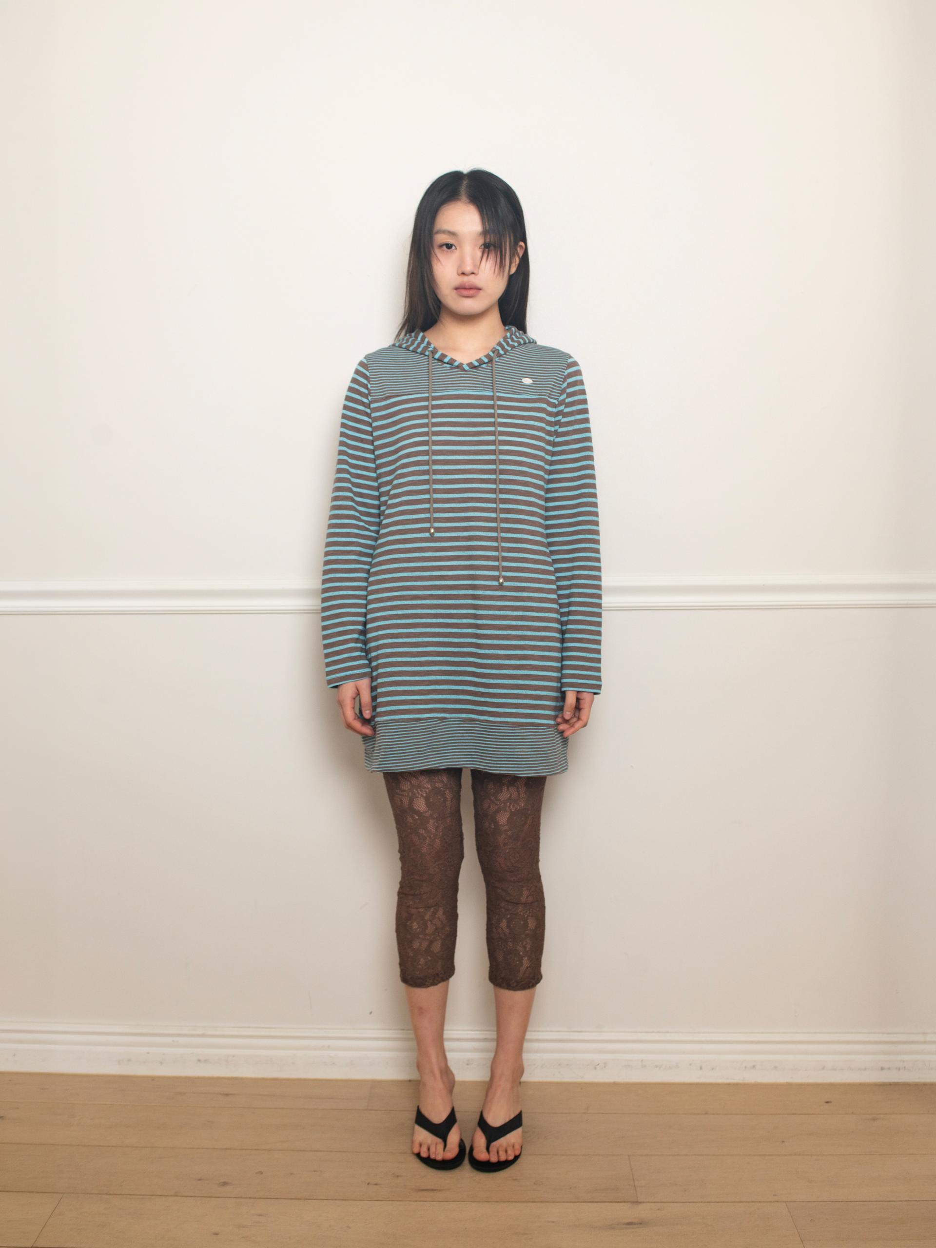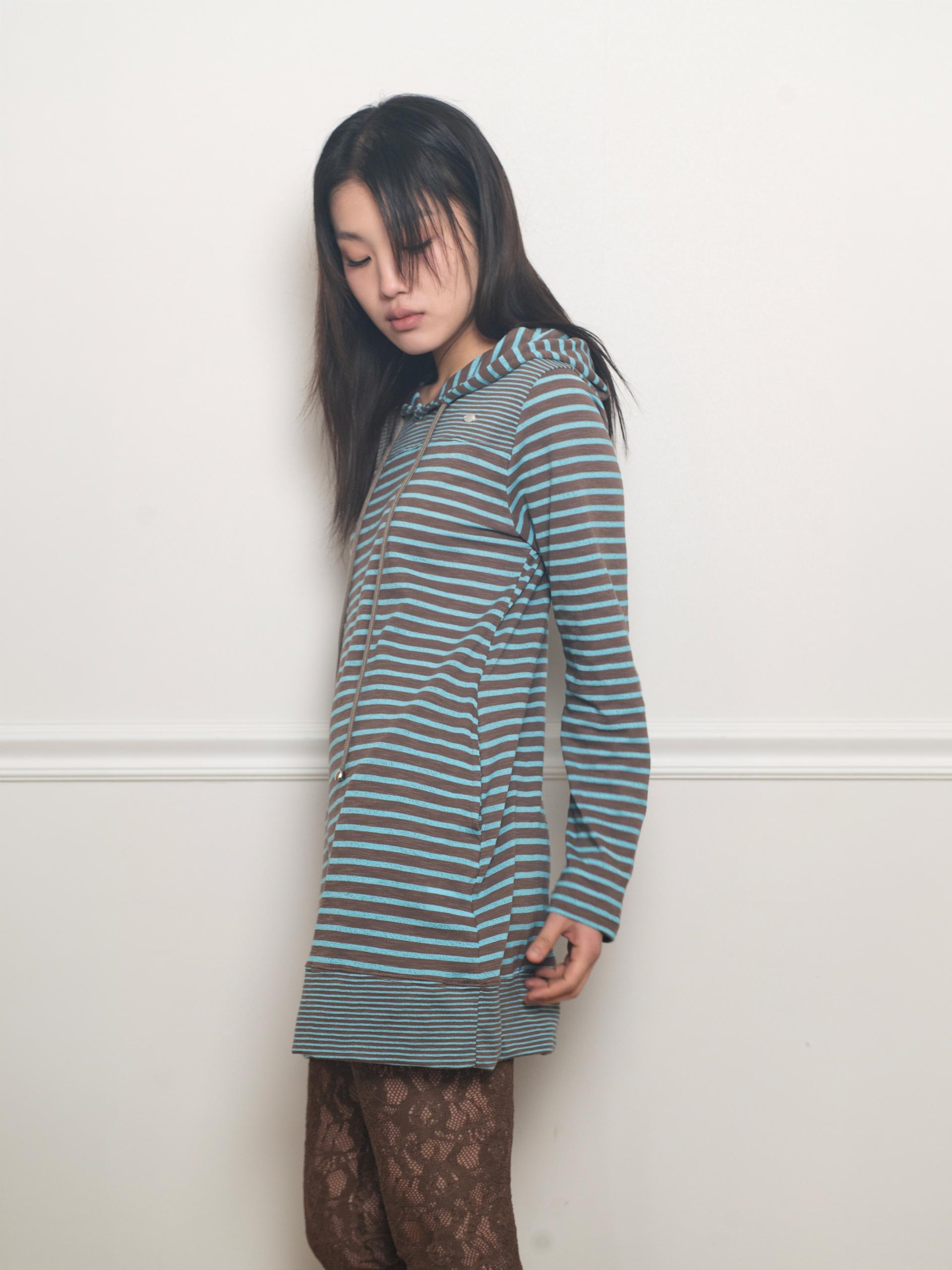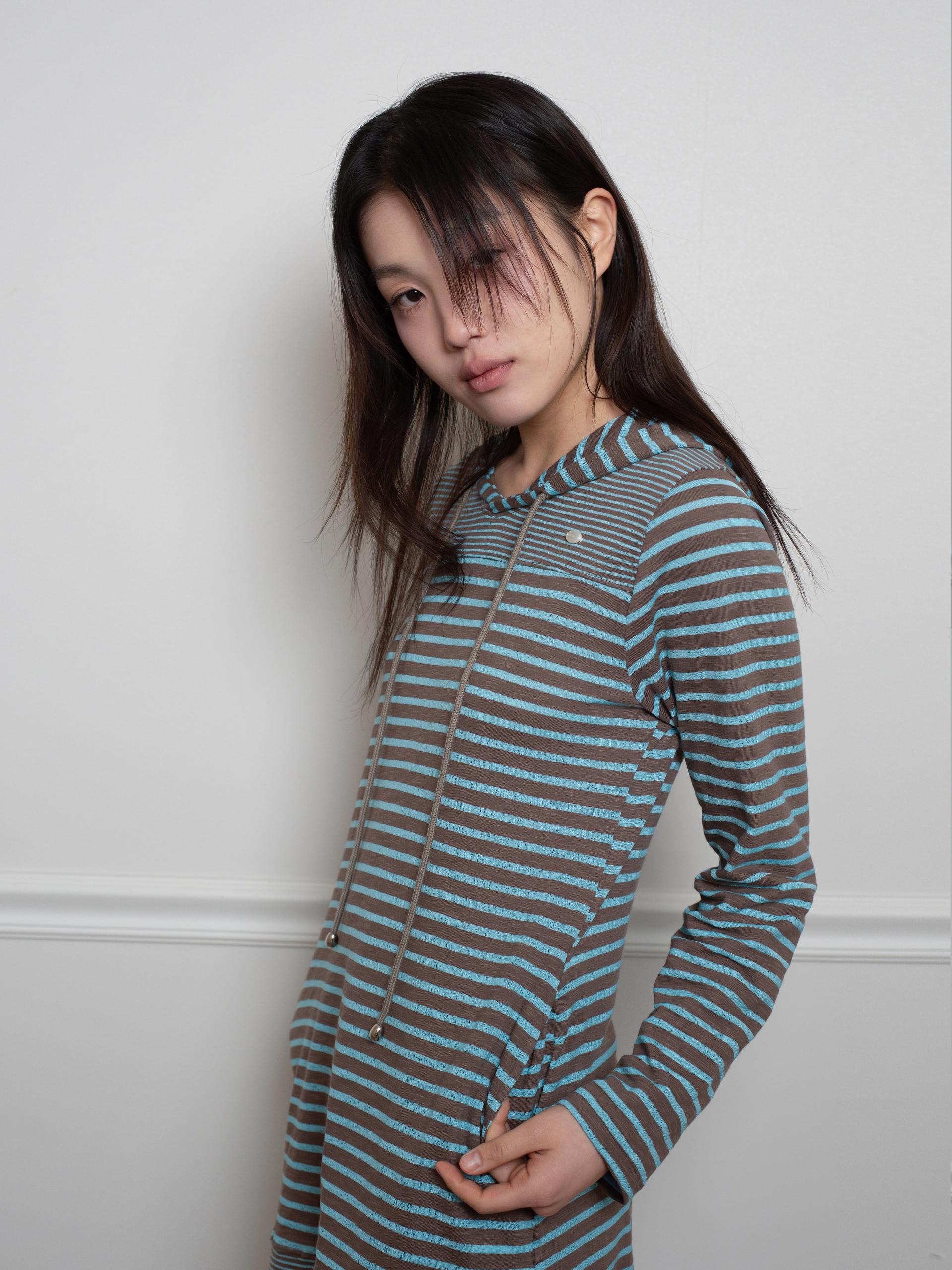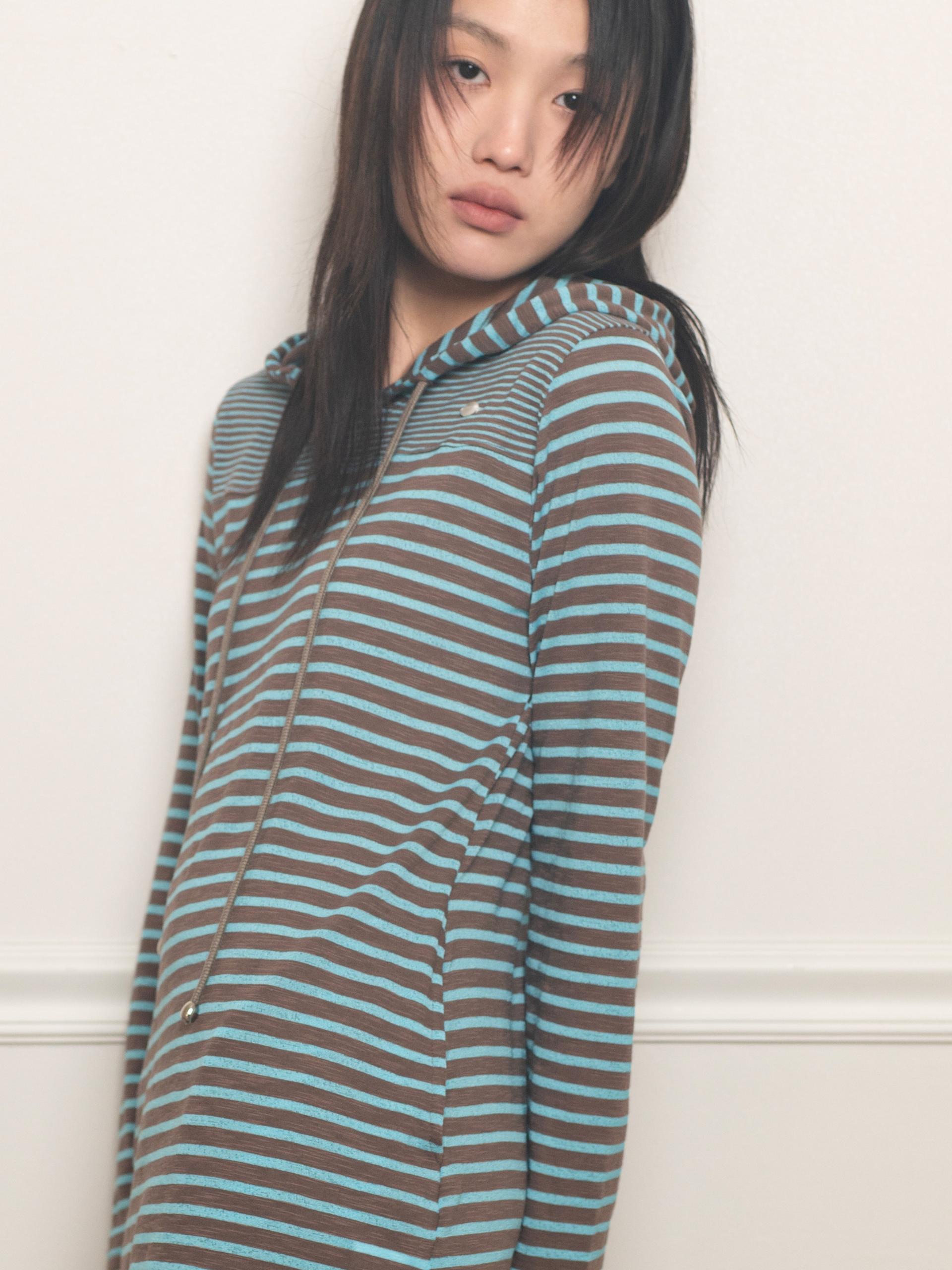 스트라이프 원단으로 제작된 STRIPE HOODIE DRESS