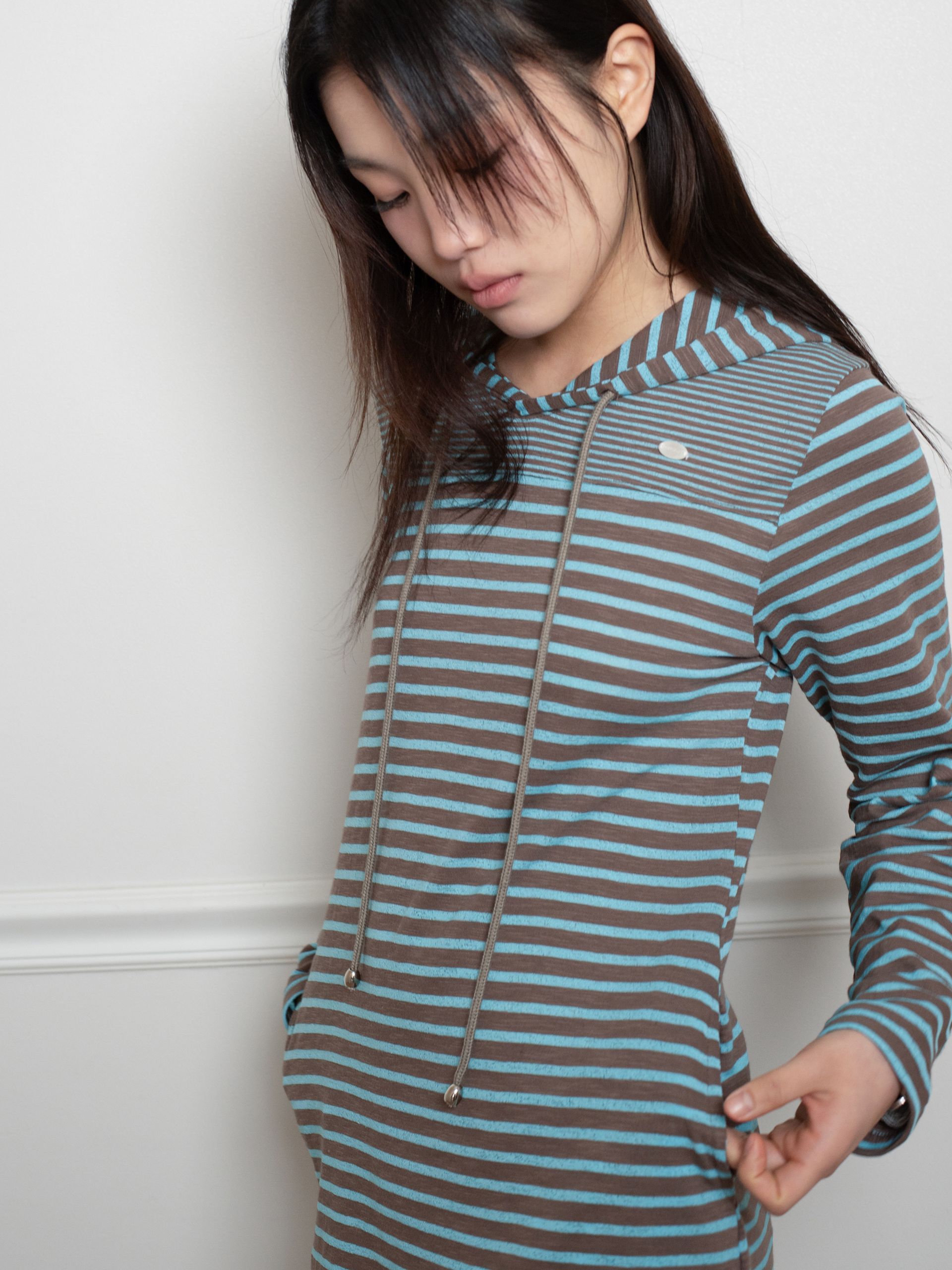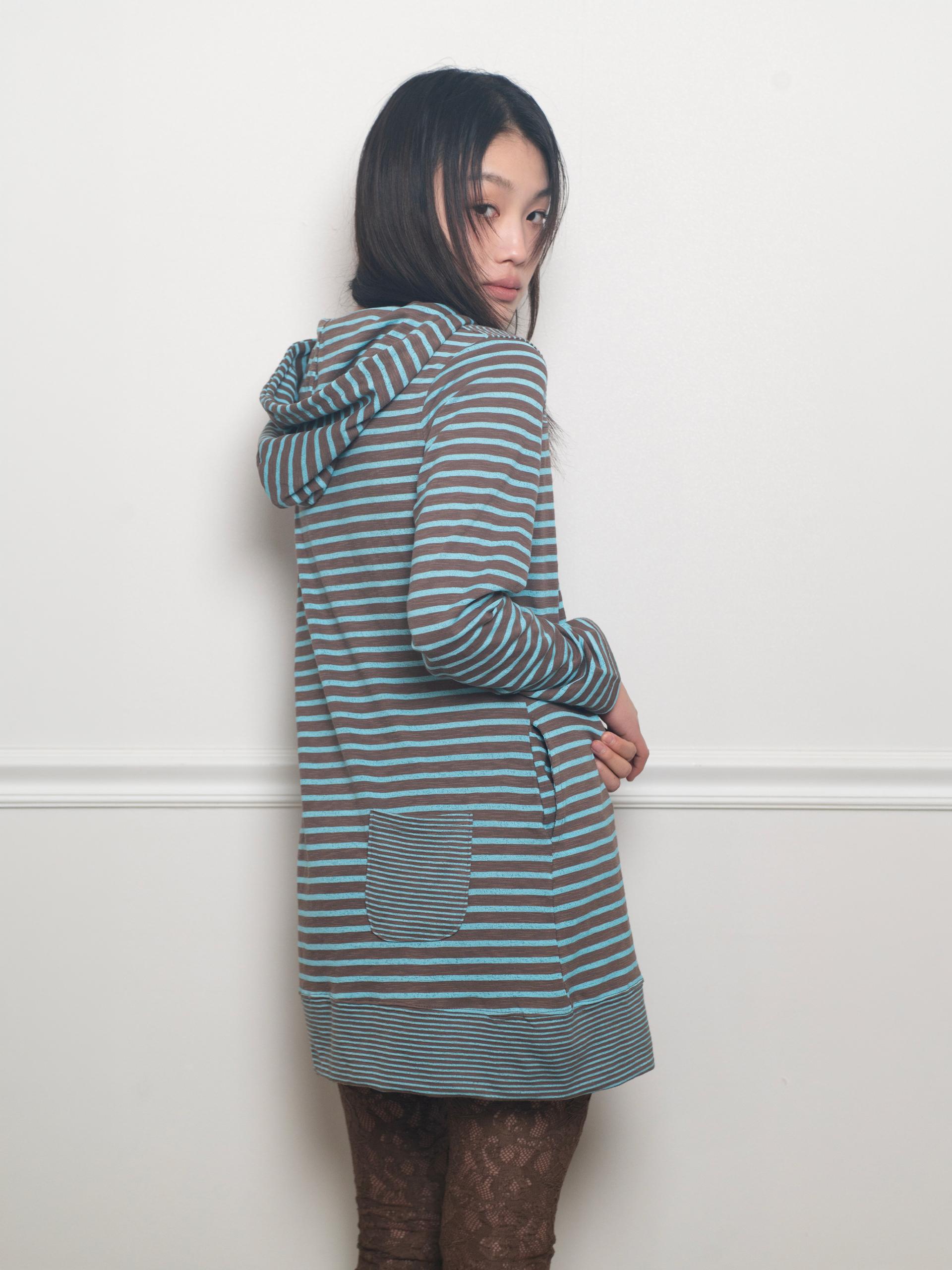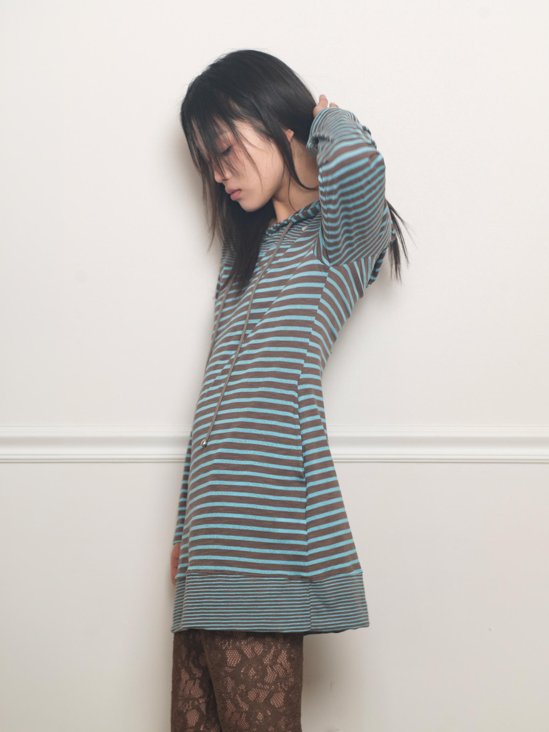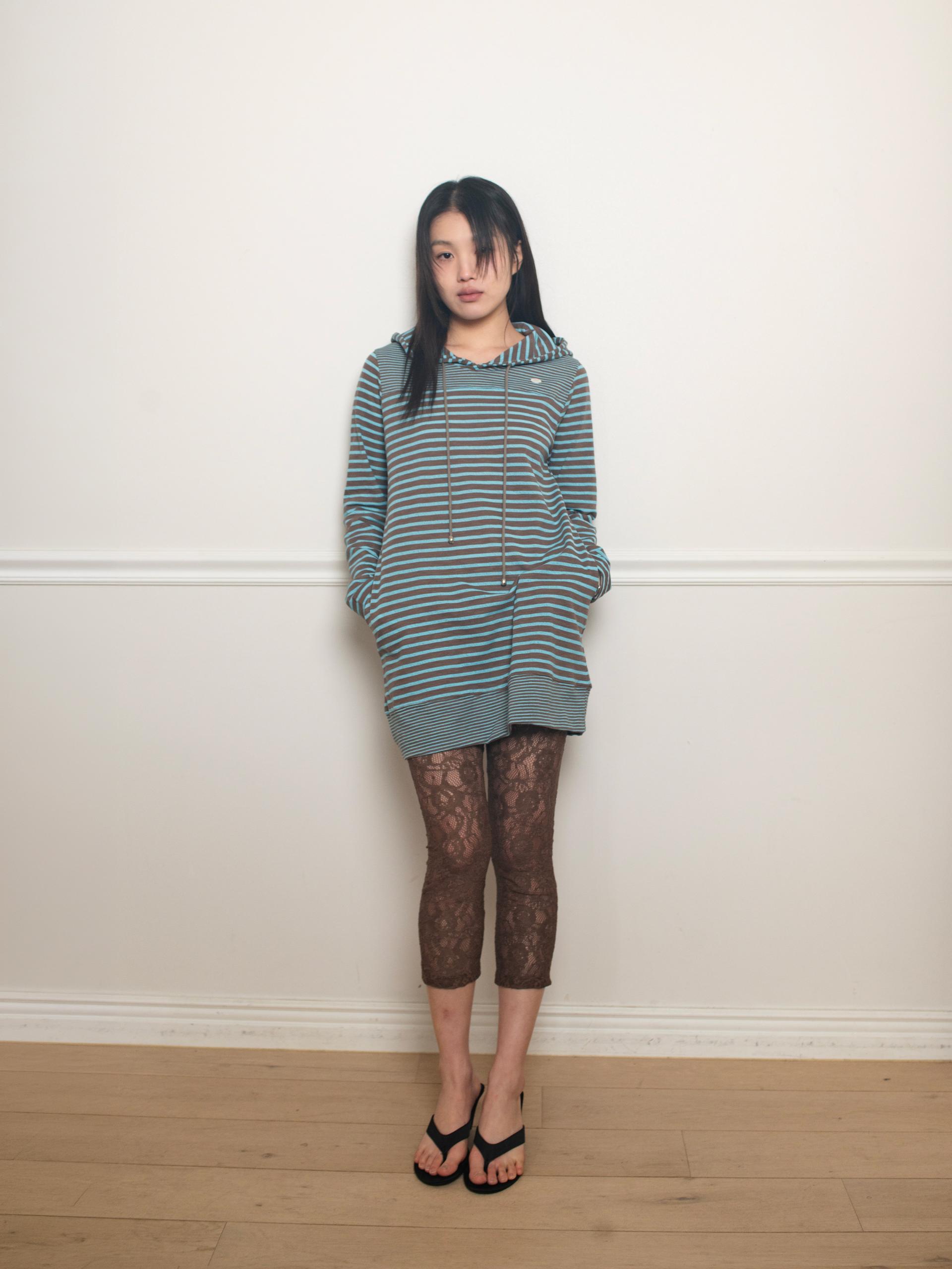 스트라이프 원단으로 제작된 STRIPE HOODIE DRESS