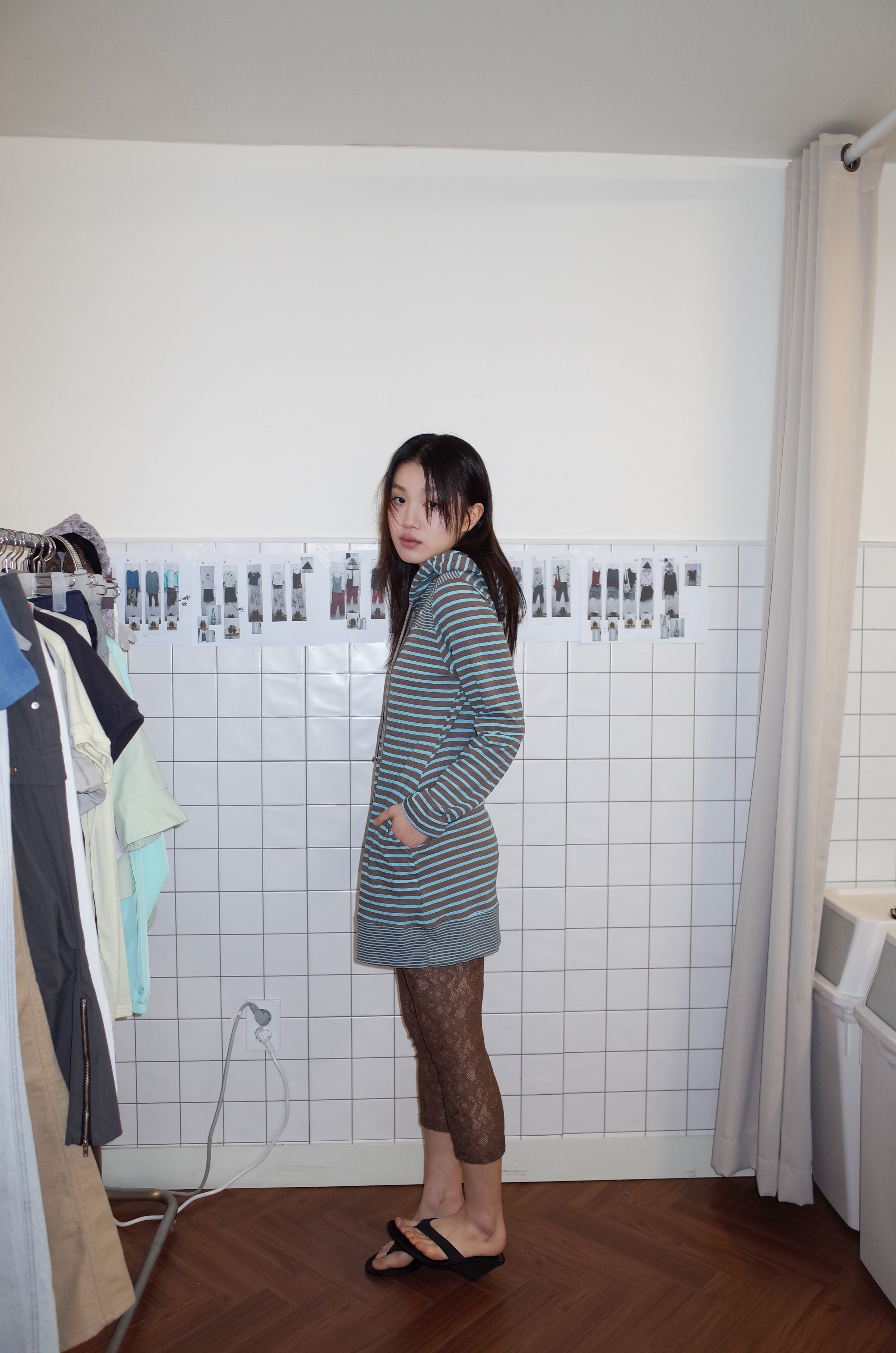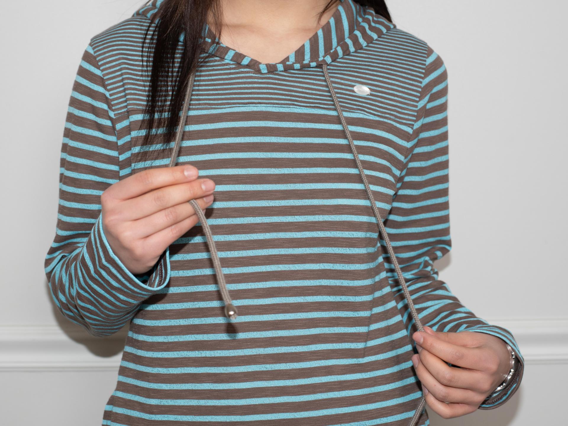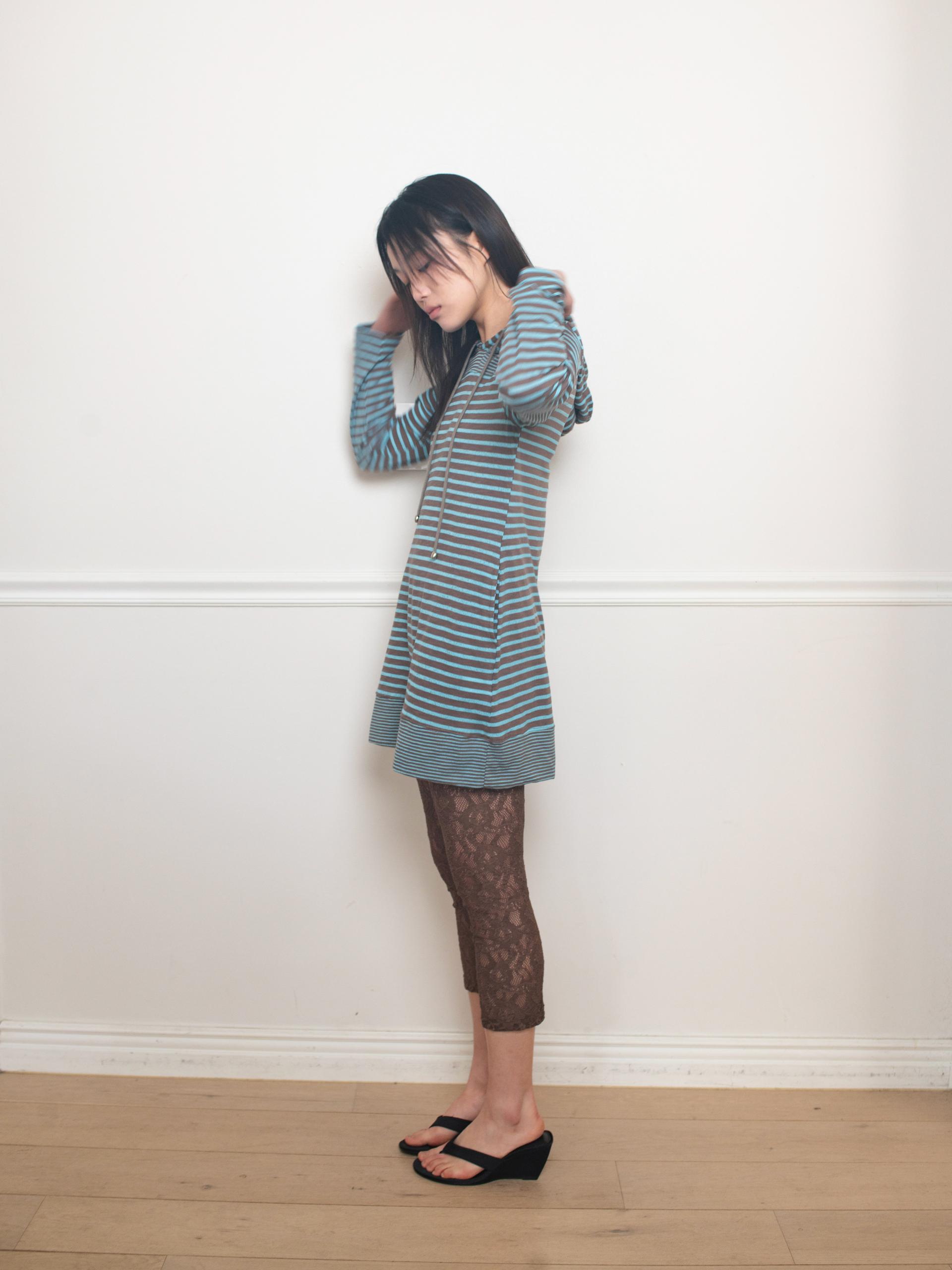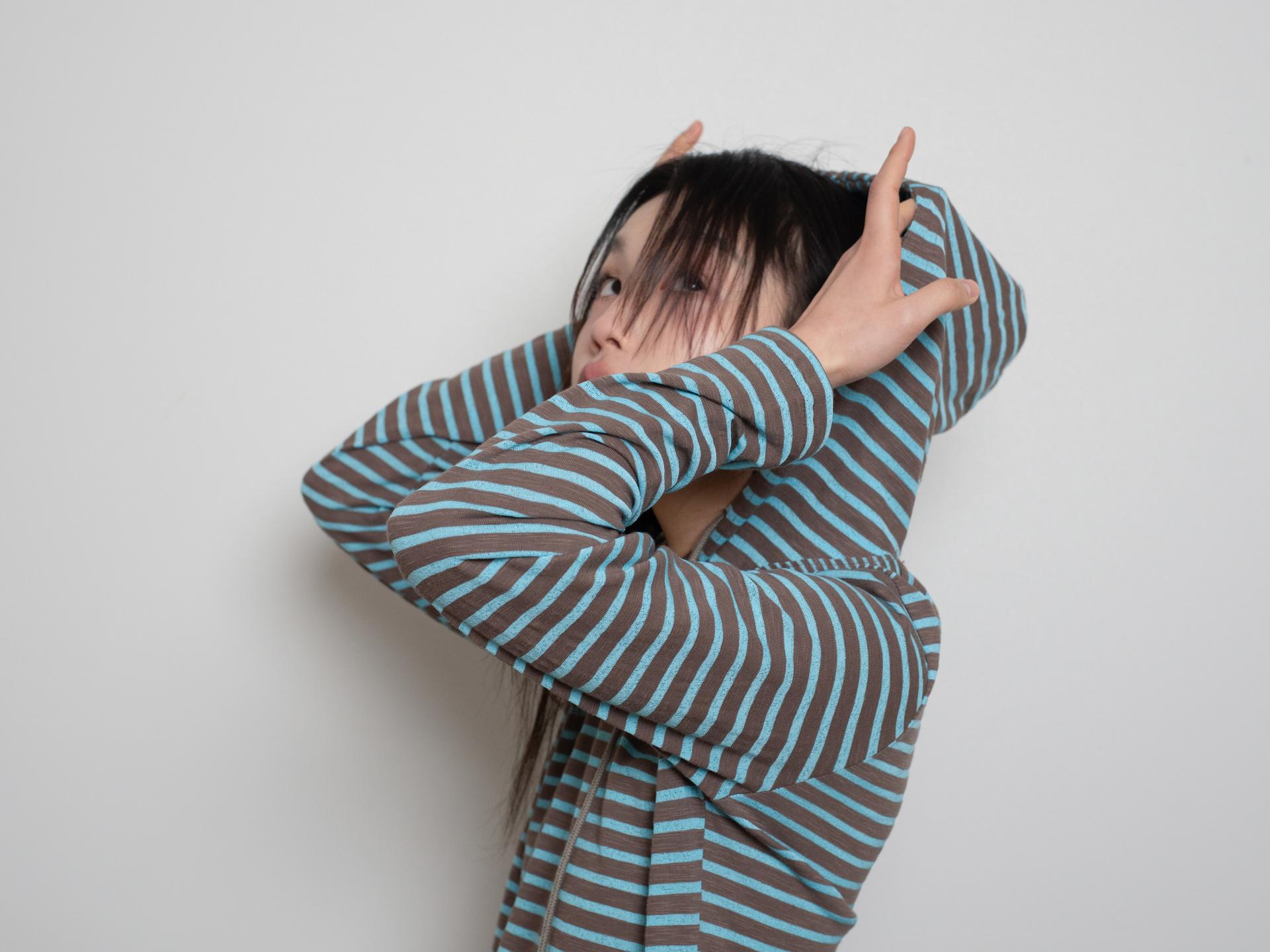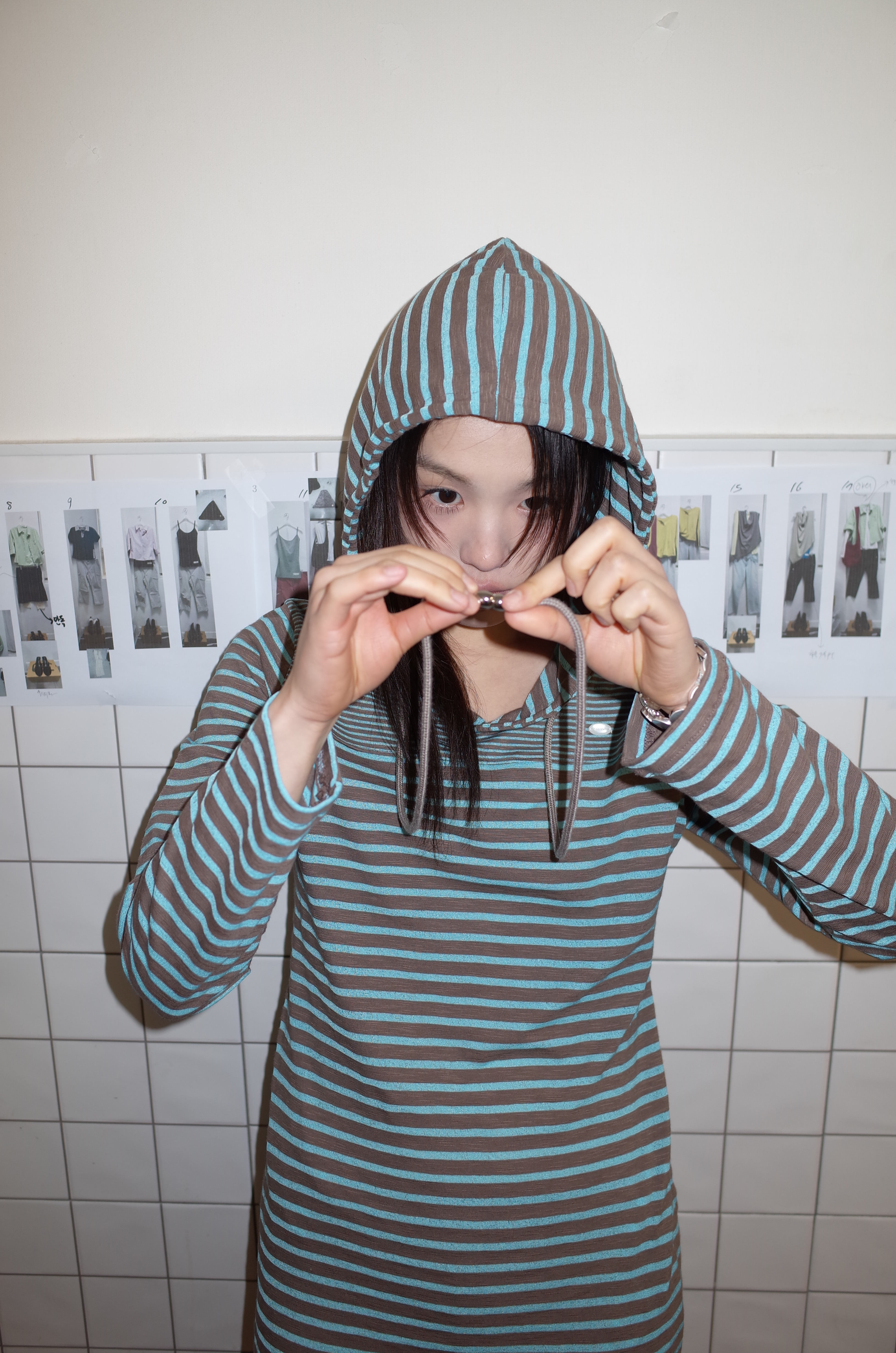 스트라이프 원단으로 제작된 STRIPE HOODIE DRESS