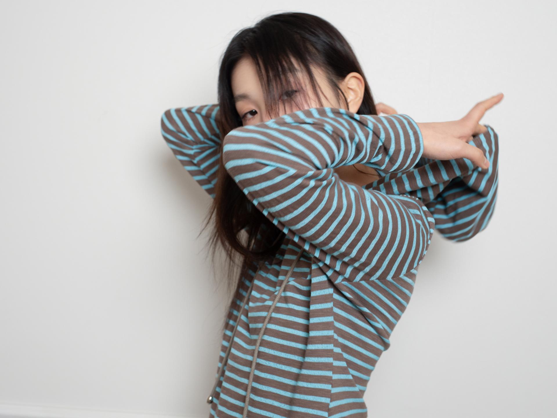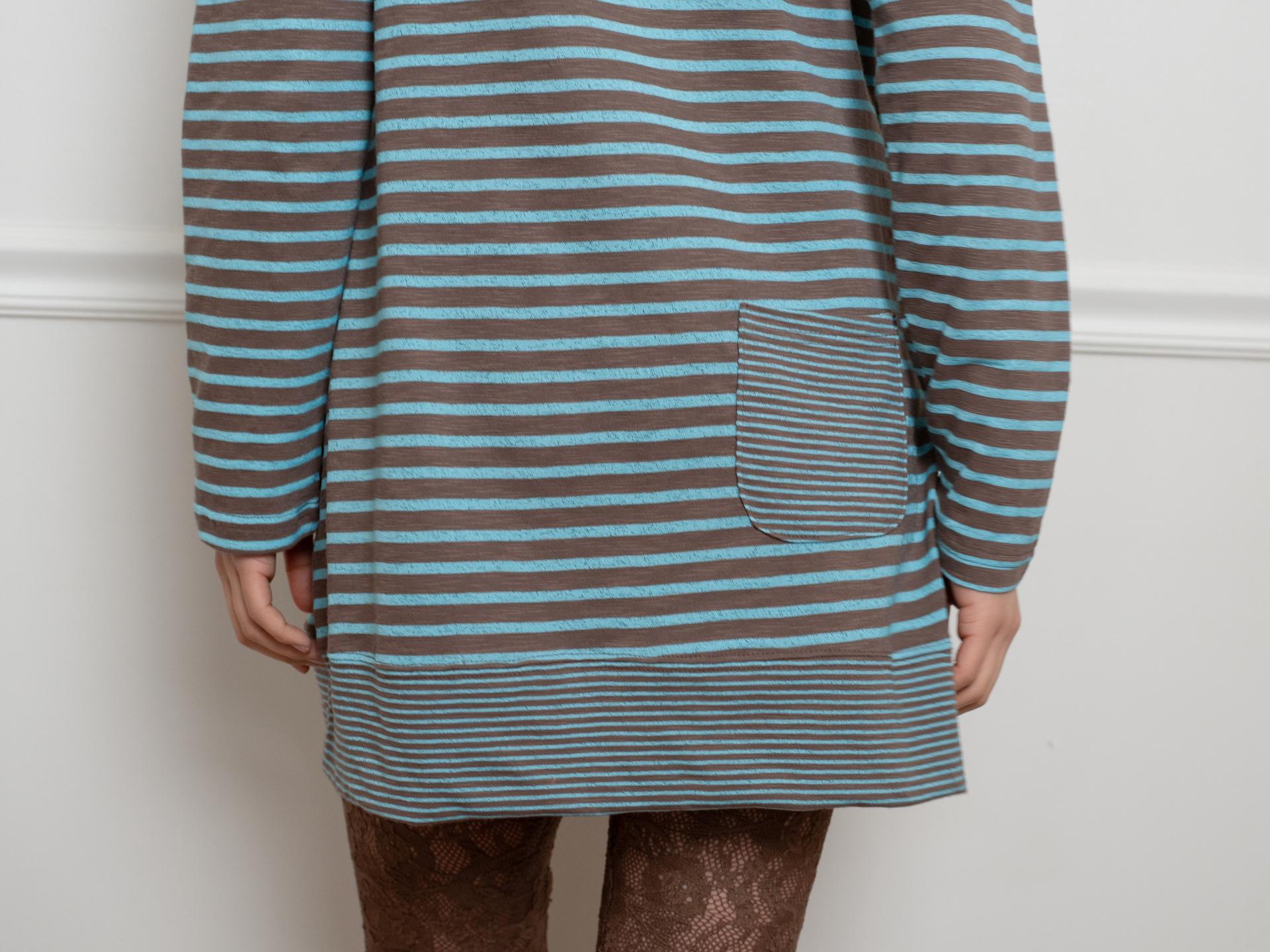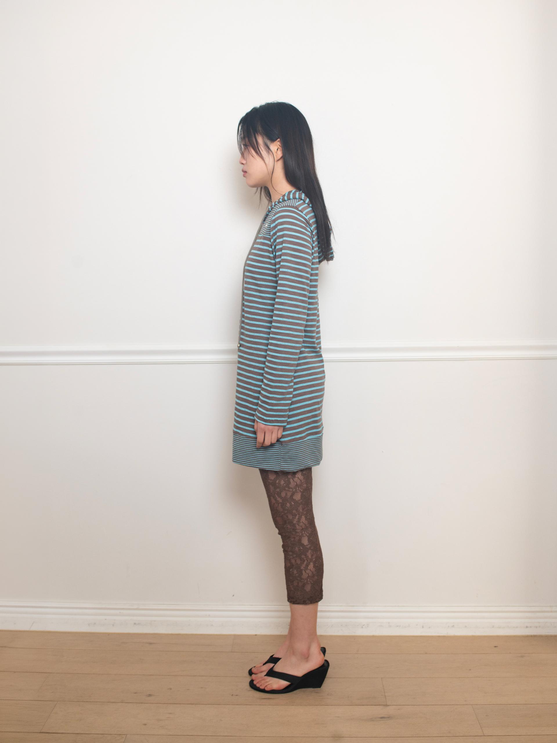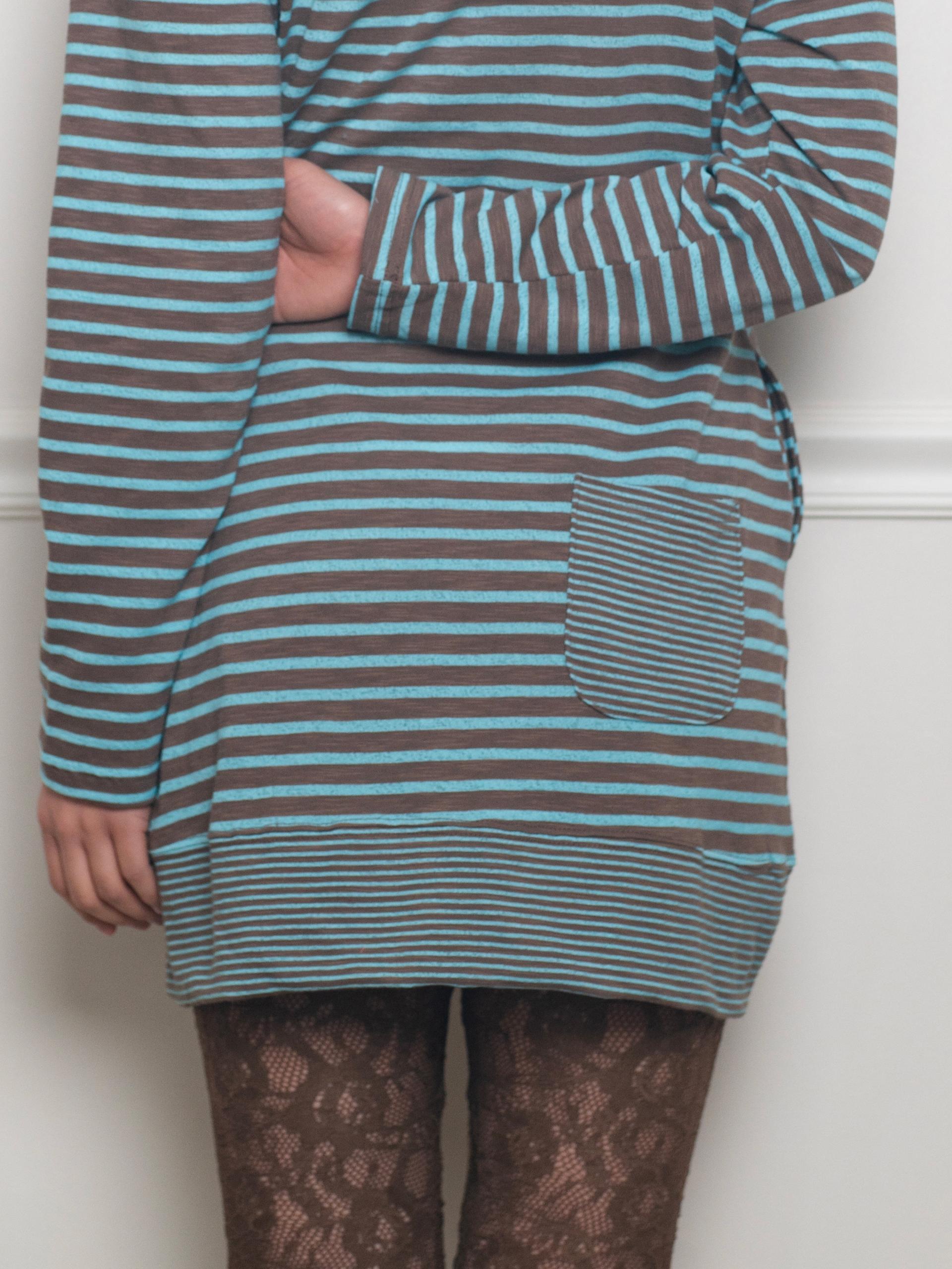 간격이 다른 두 가지 스트라이프 원단을 믹스해 독특한 리듬감을 살린 디자인입니다. 신축성 있는 원단으로 편안하게 제작되었으며, 적당한 미니 기장으로 단독은 물론 팬츠와 레이어드하기에 좋습니다. 빅 후드와 사이드 포켓으로 실용성을 더하고 왼쪽 가슴에는 온스카 로고가 각인된 단추 포인트를 더했습니다.