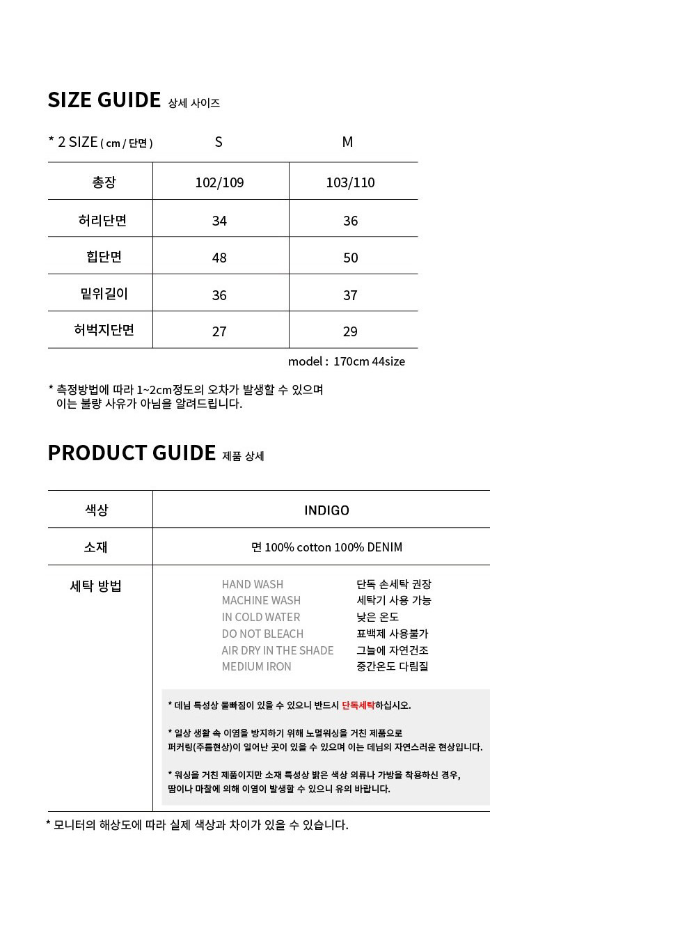 * 이염이 발생할 수 있는 데님 원단의 특성상 제품을 받으신 후 뒤집어서 찬물로 세탁 후 착용하시는 것을 추천드립니다.