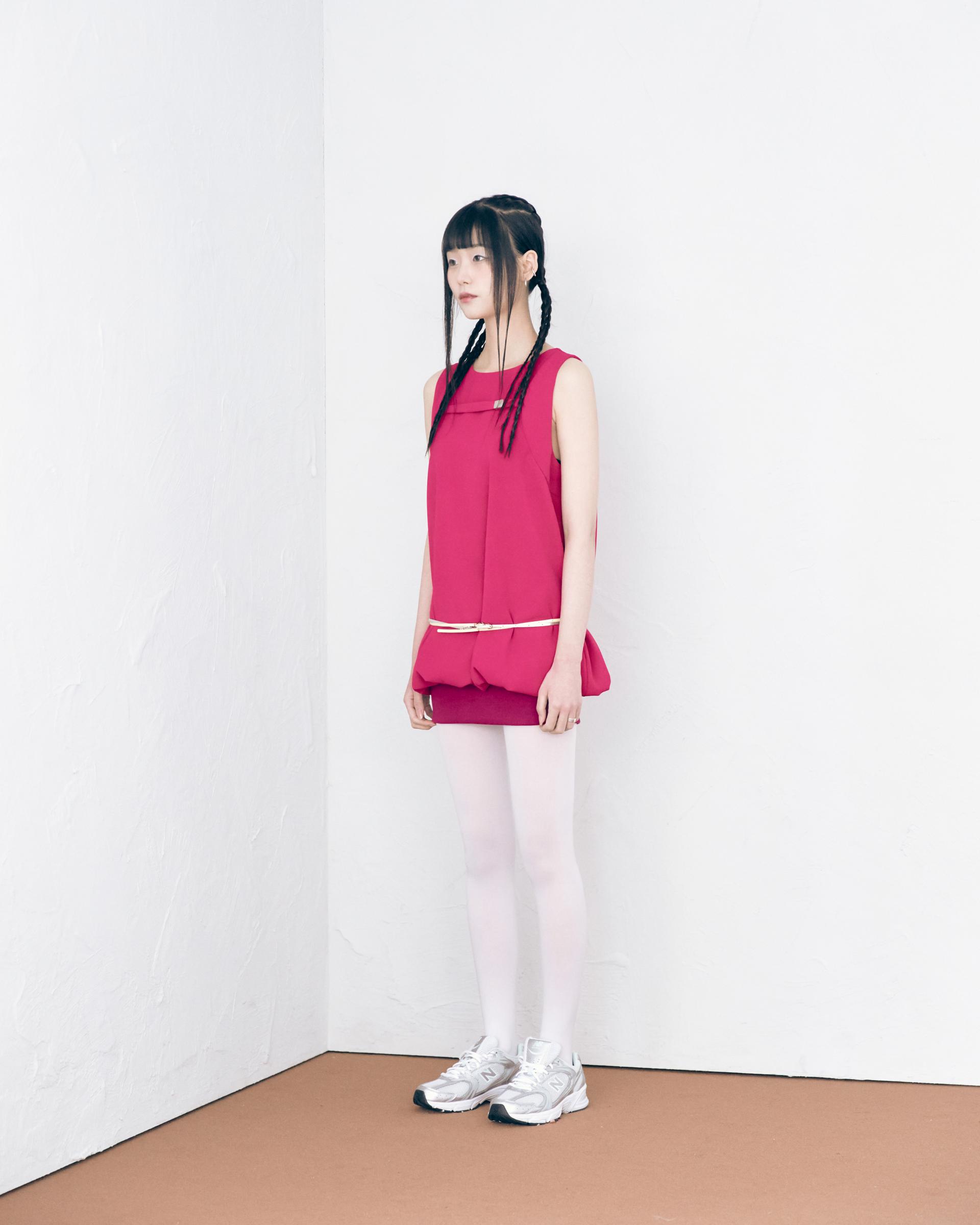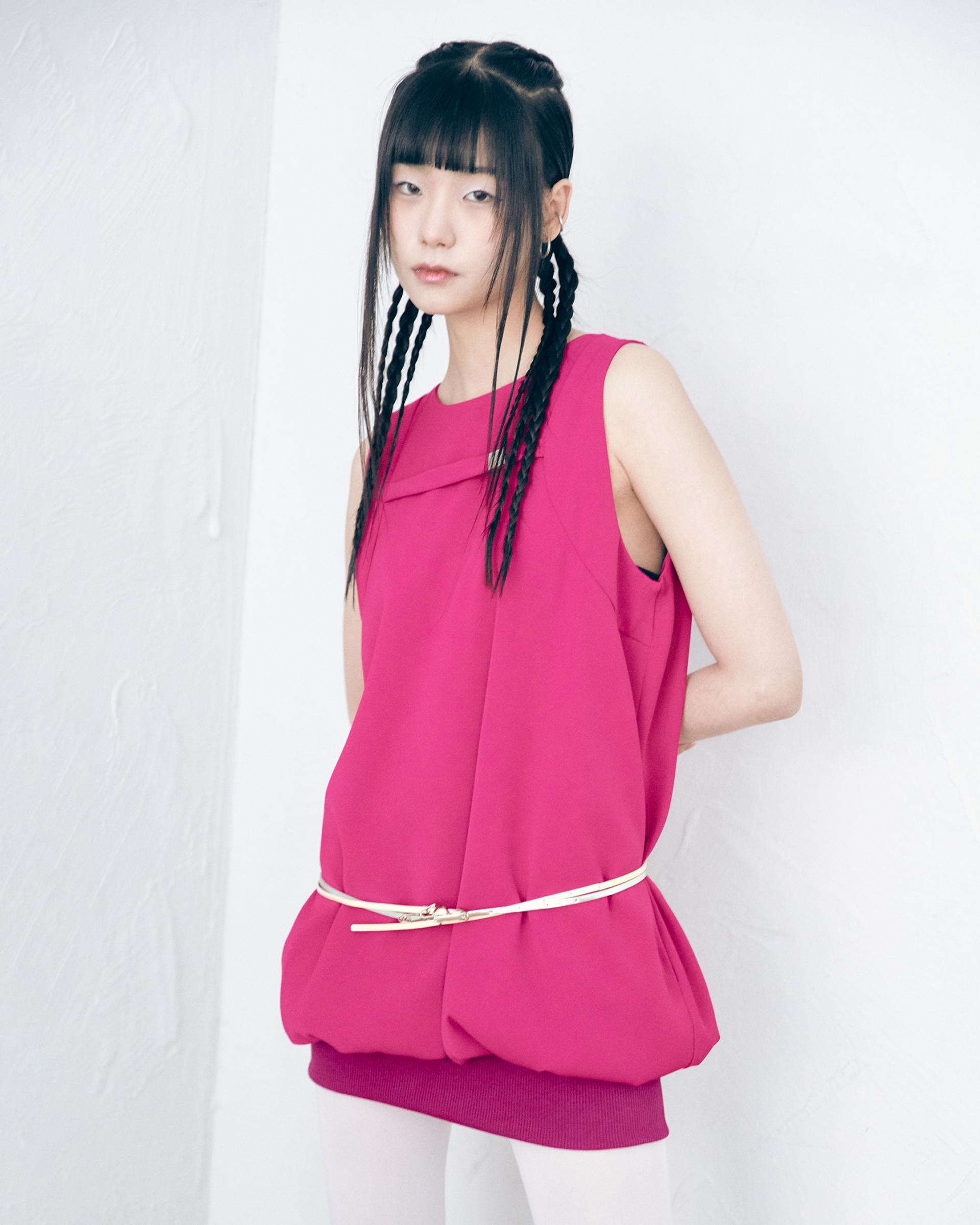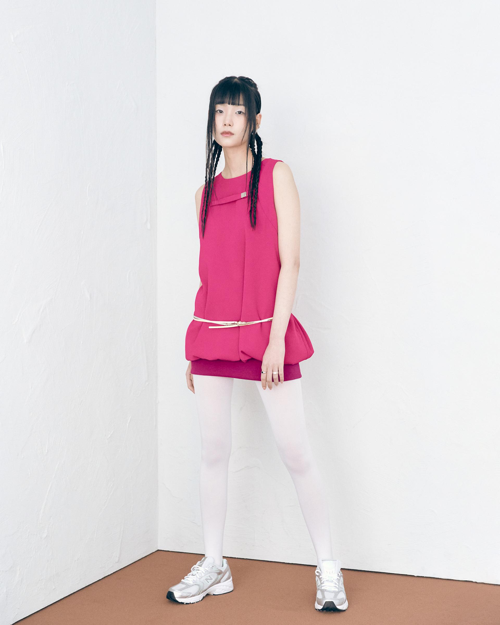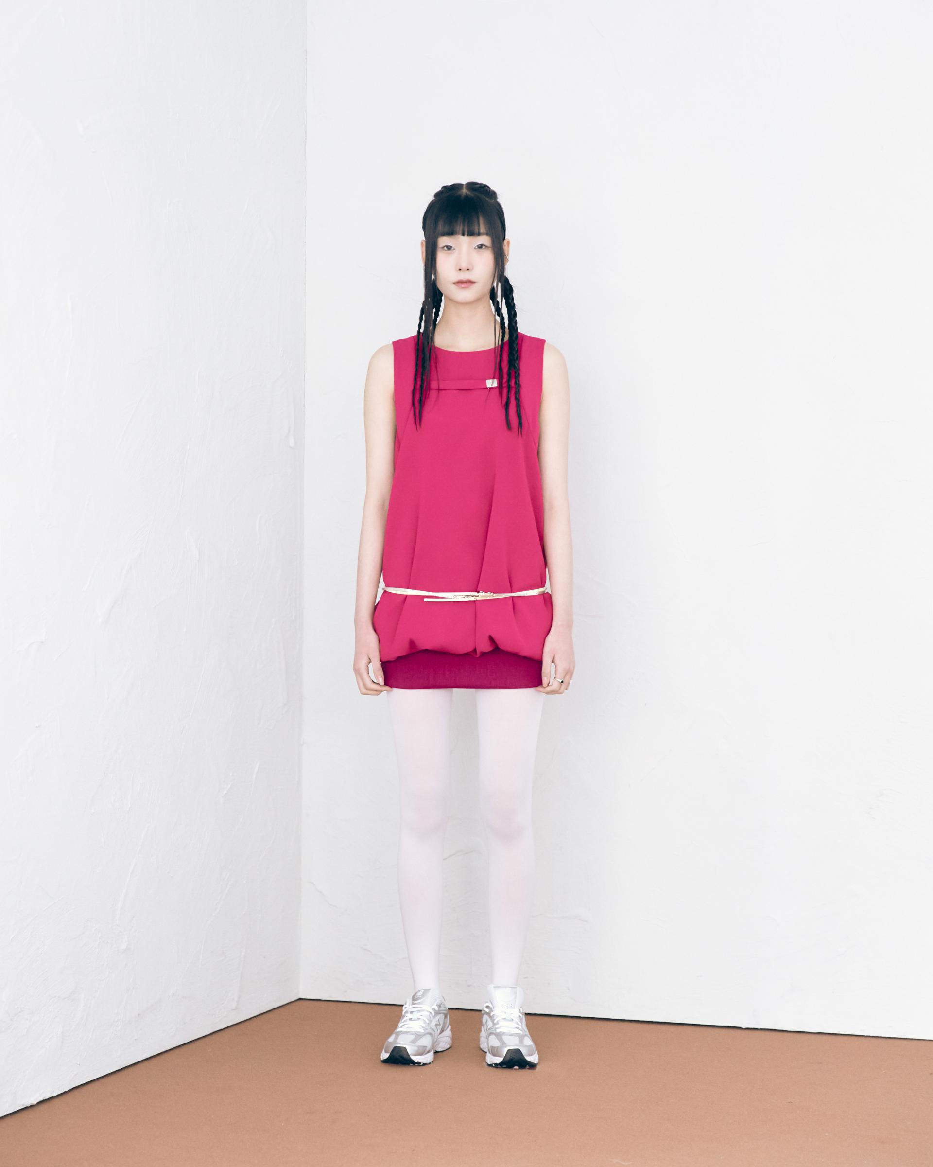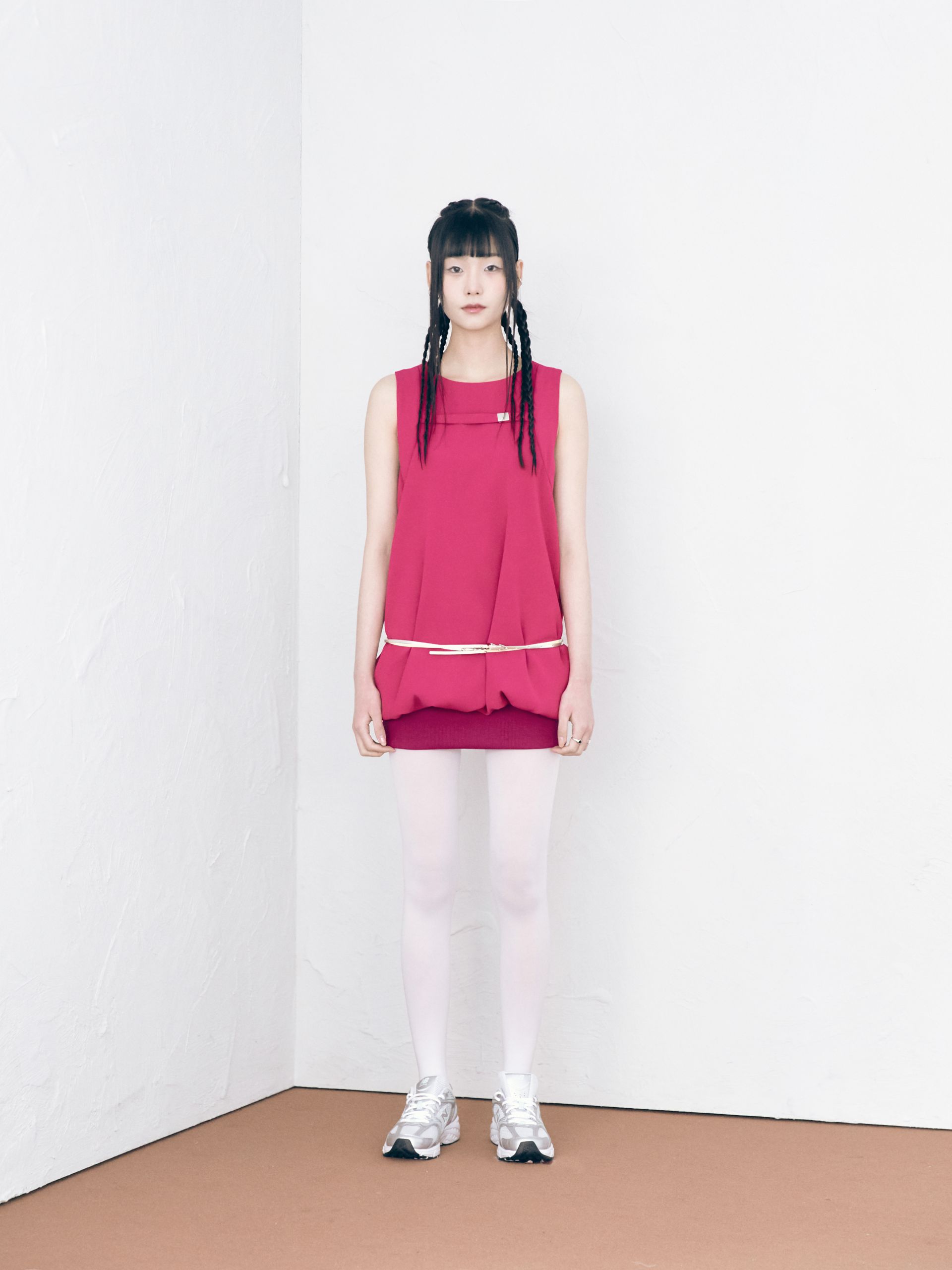 쇄골라인이 드러나는 보트넥 디자인과 붙는 듯한 암홀 라인과 풍성하게 퍼지는 밑단을 통해 단독으로 착용 시 매력적인 무드를 보여줍니다. 밑단 시보리가 볼륨감 있는 실루엣을 잡아주고 이를 올리거나 내려 착용해 드레스는 물론 탑으로도 착용 가능한 활용도 높은 제품입니다. 가슴 위를 지나는 벨트 포인트는 자체 제작한 버클로 온스카의 로고가 드러나 브랜드만의 아이덴티티를 보여줍니다.