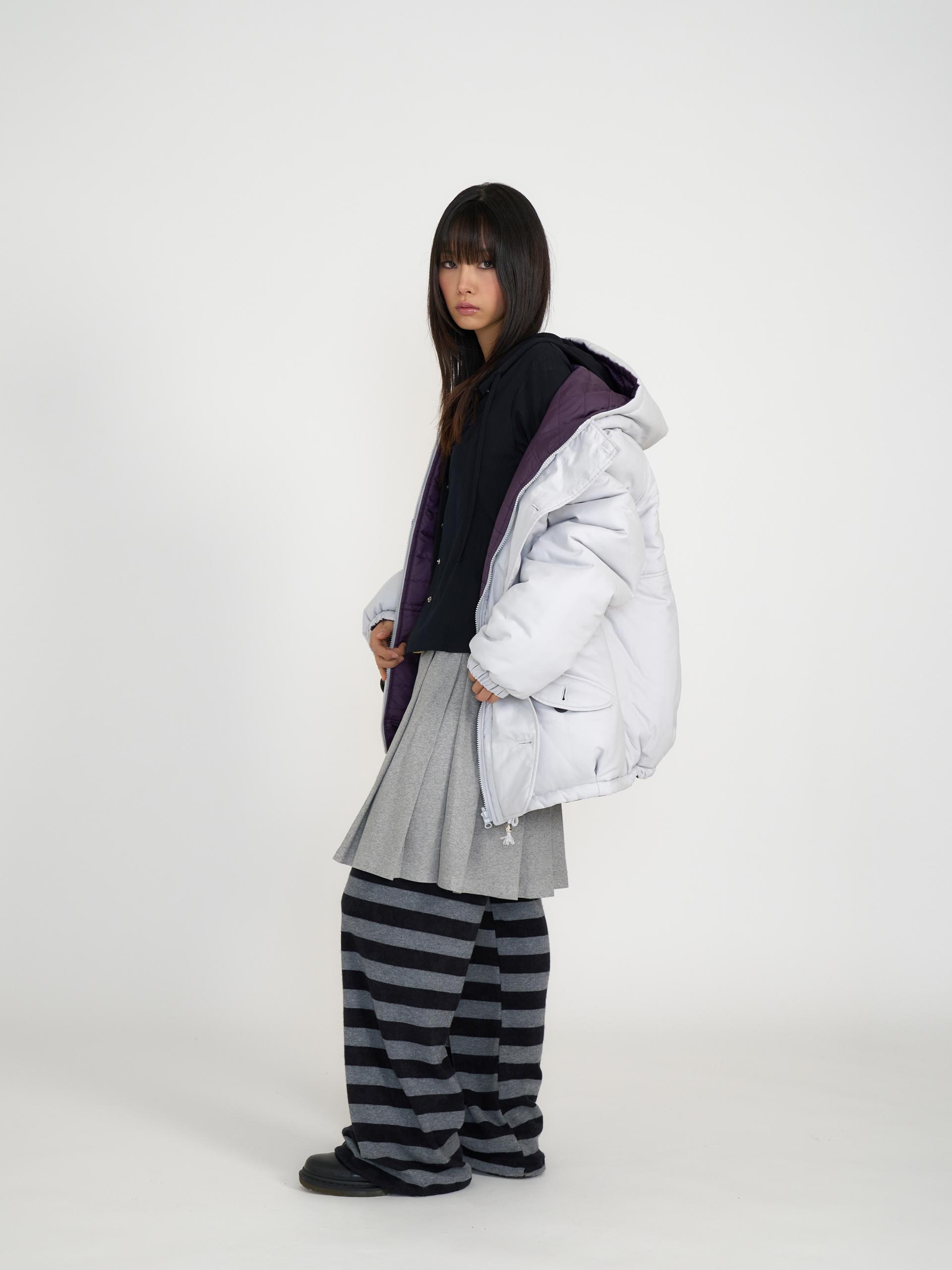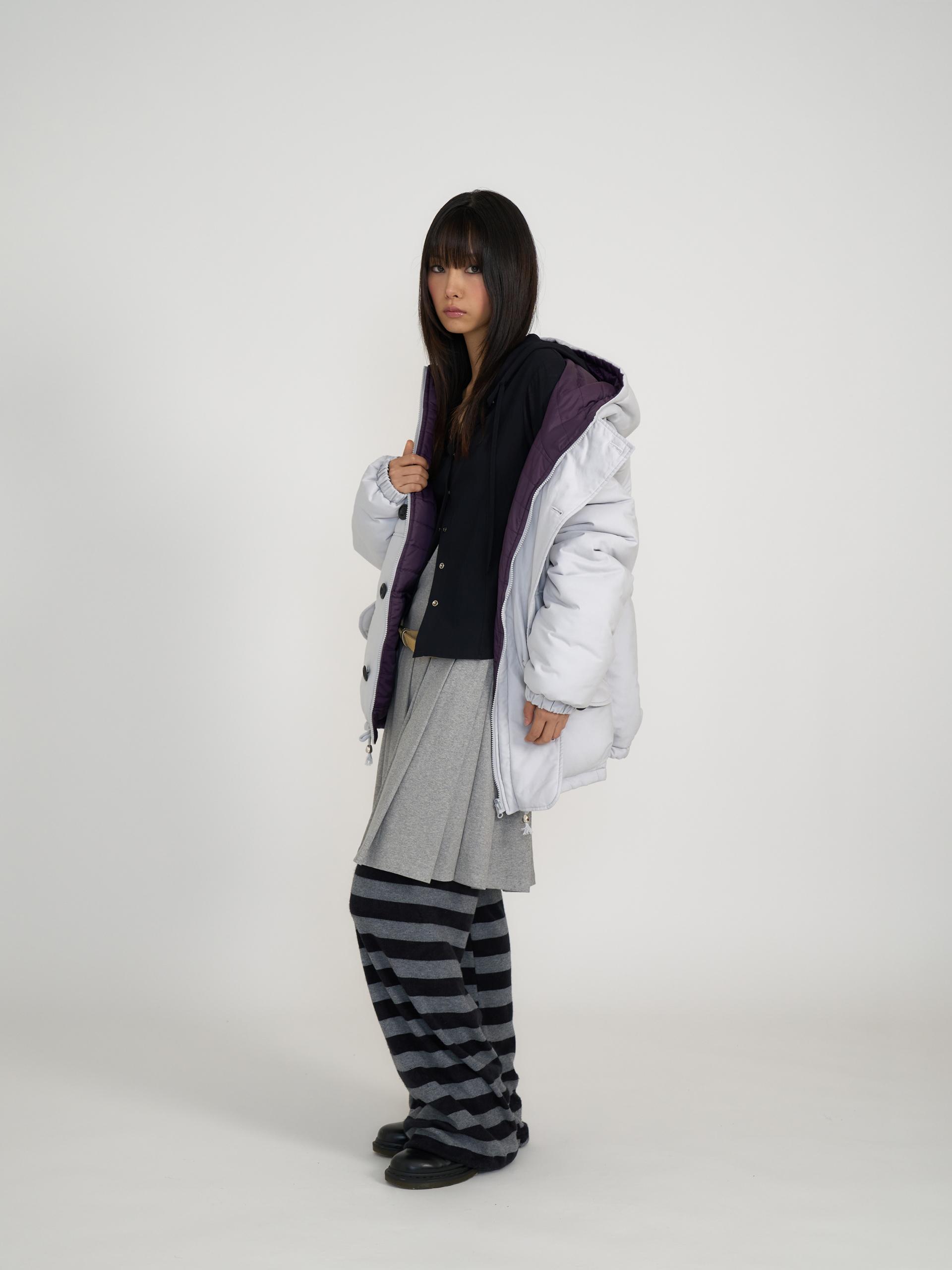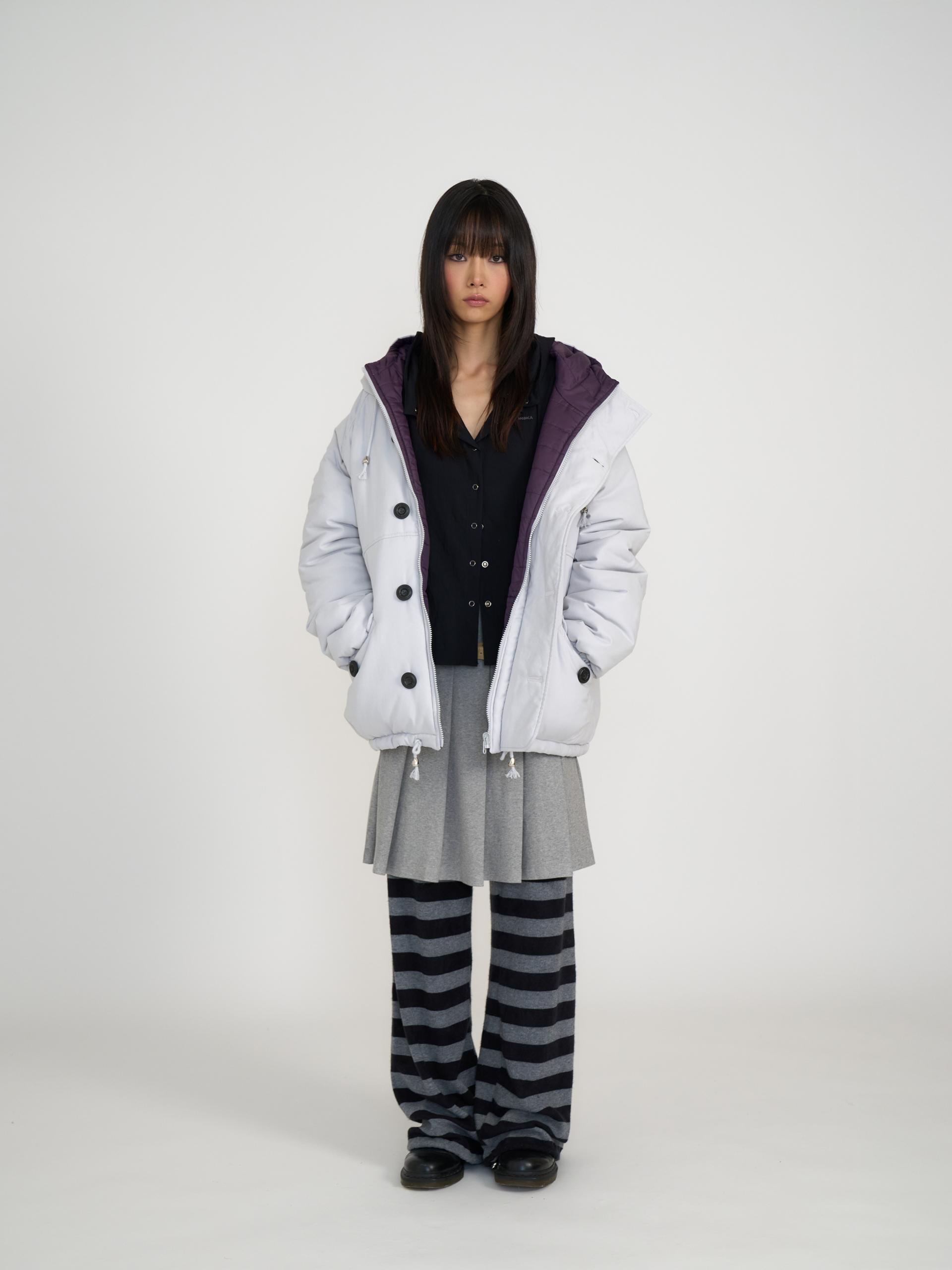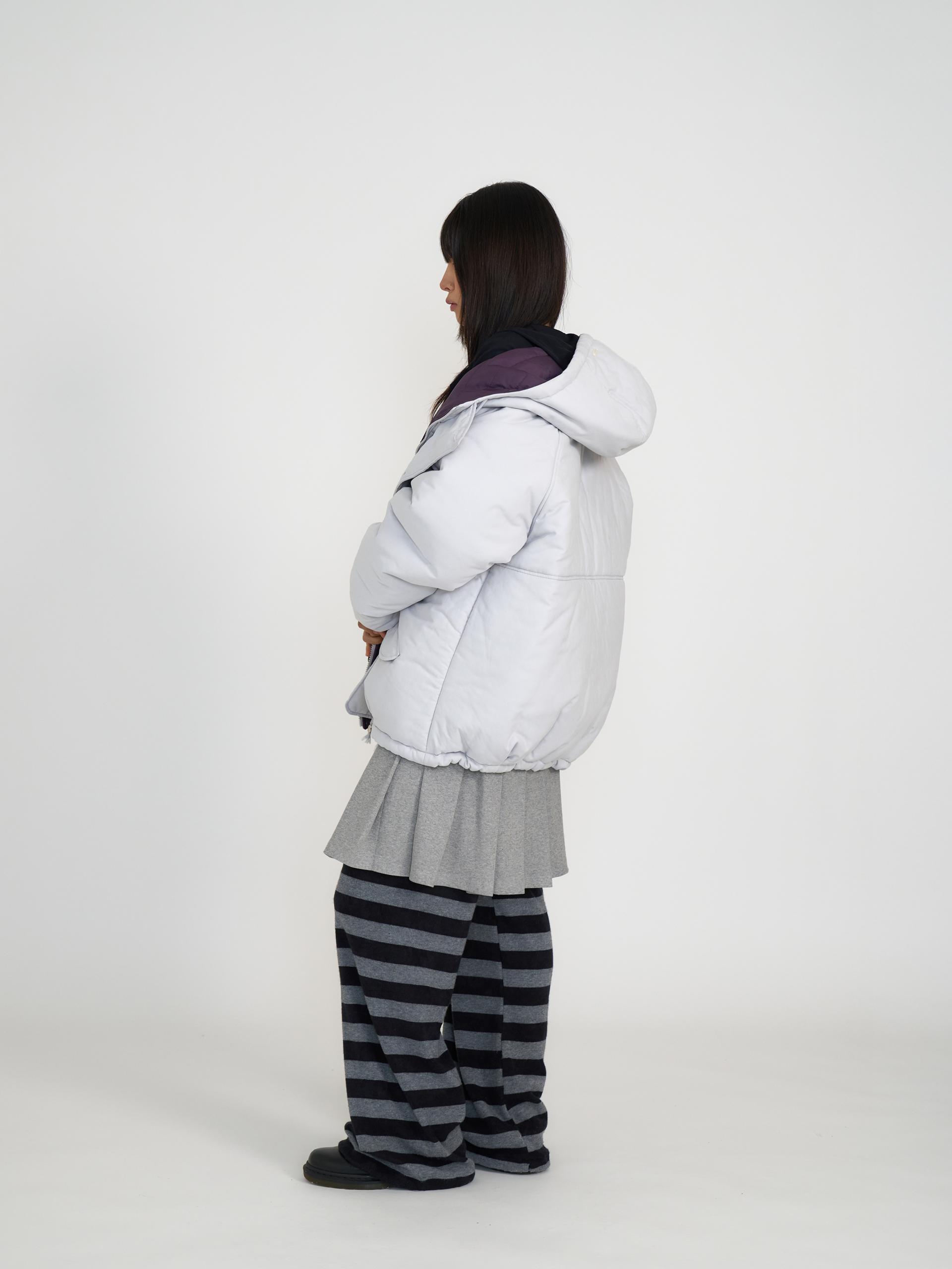 가볍고 보온성이 높은 3M신슐레이트와 3온스 안감 퀼팅을 더해 총 6온스의 두께의 리버서블 아우터입니다. 신슐레이트 소재는 동일두께대비 일반패딩보다 약 3.6배 뛰어난 보온력을 가지고 있으며 물세탁이 가능합니다. 한쪽은 부드러운 원단과 볼드한 단추, 귀여운 포켓 디테일로 캐주얼 무드를, 반대쪽은 발수성 폴리 원단과 스트라이프 퀼팅 디테일로 스포티 무드를 보여줍니다. 두 가지 분위기를 자유롭게 즐길 수 있는 실용적인 아이템으로 라이트 그레이&퍼플, 네이비&스카이블루 두 가지 컬러로 출시되었습니다.