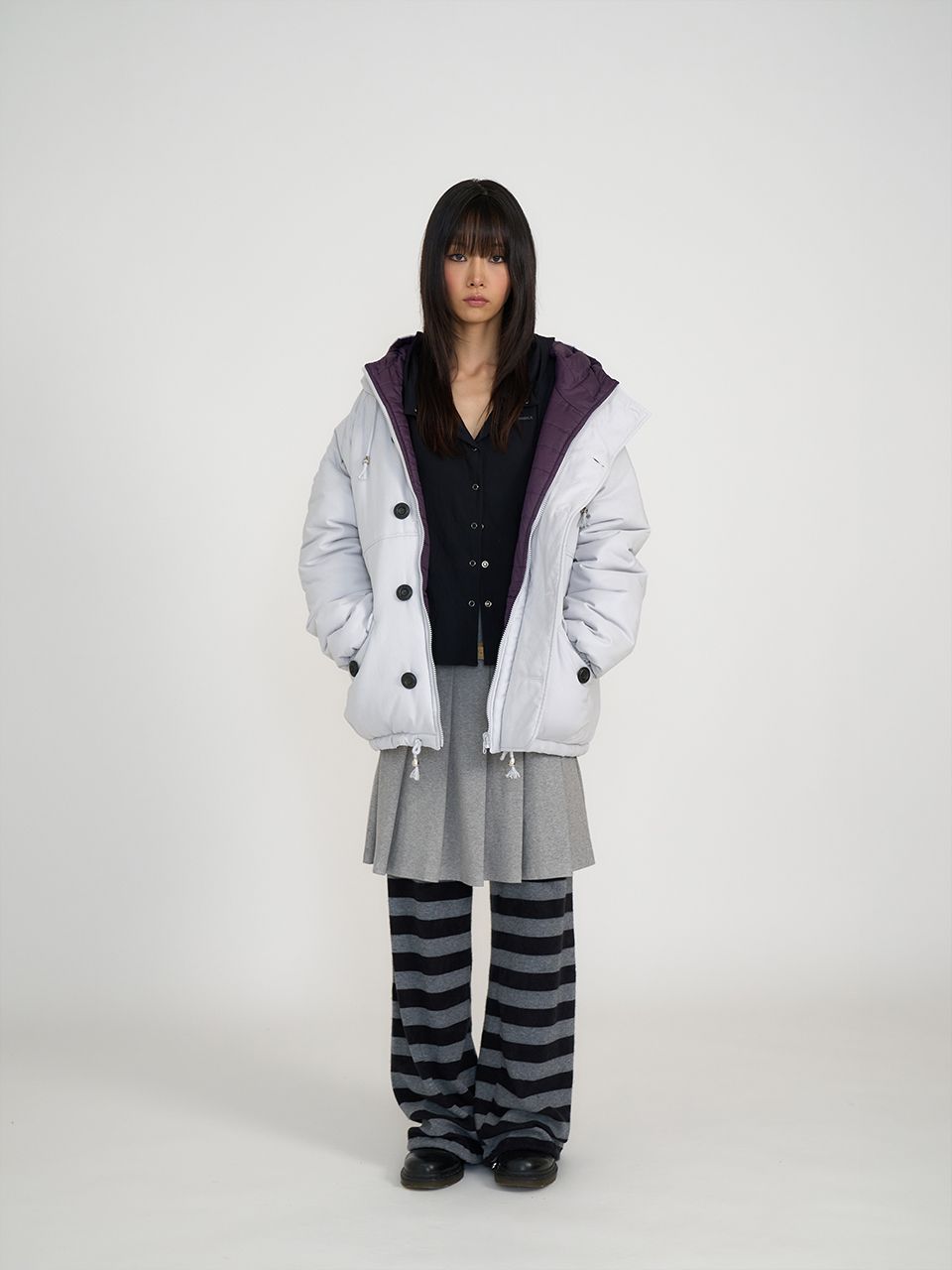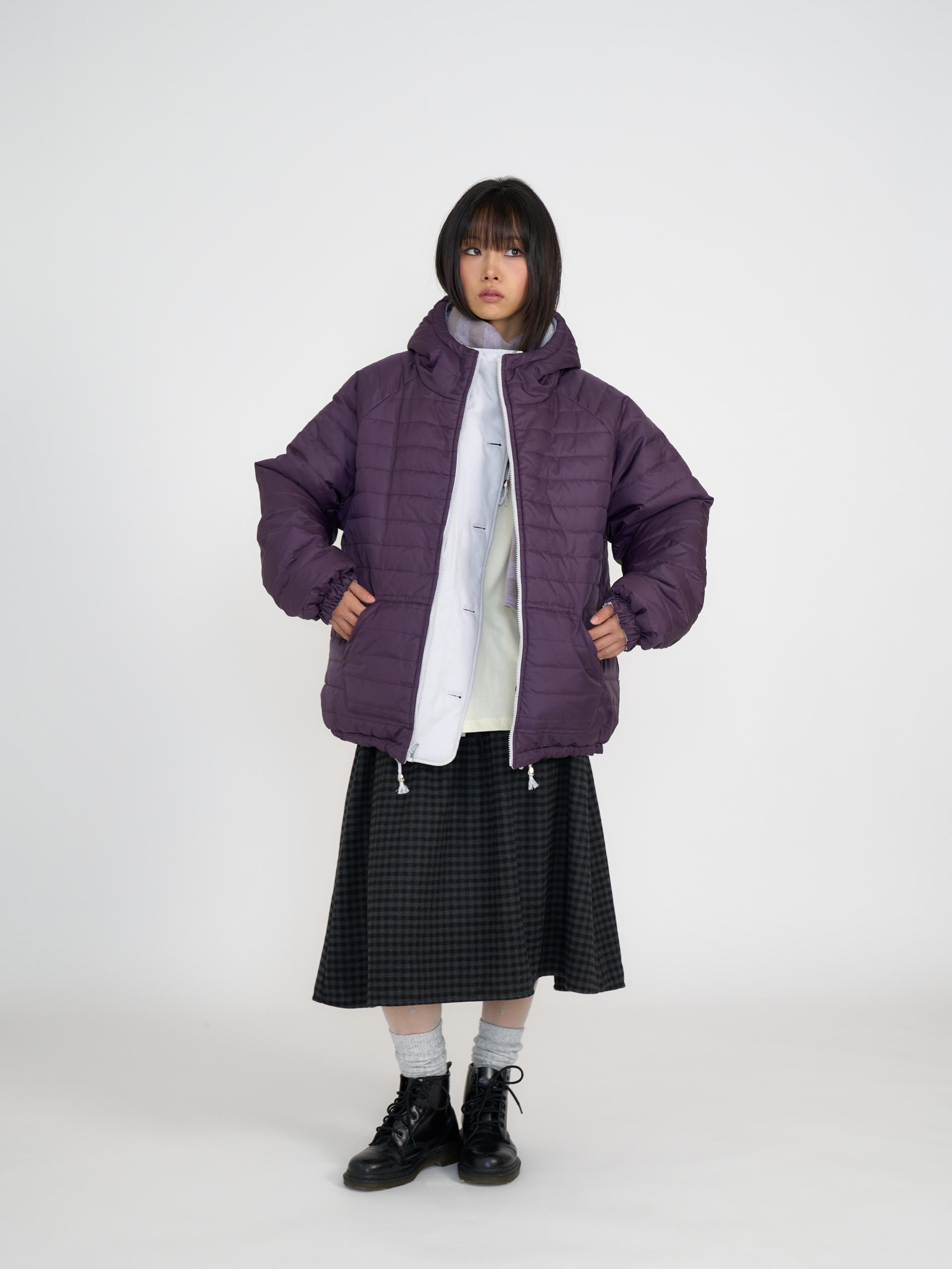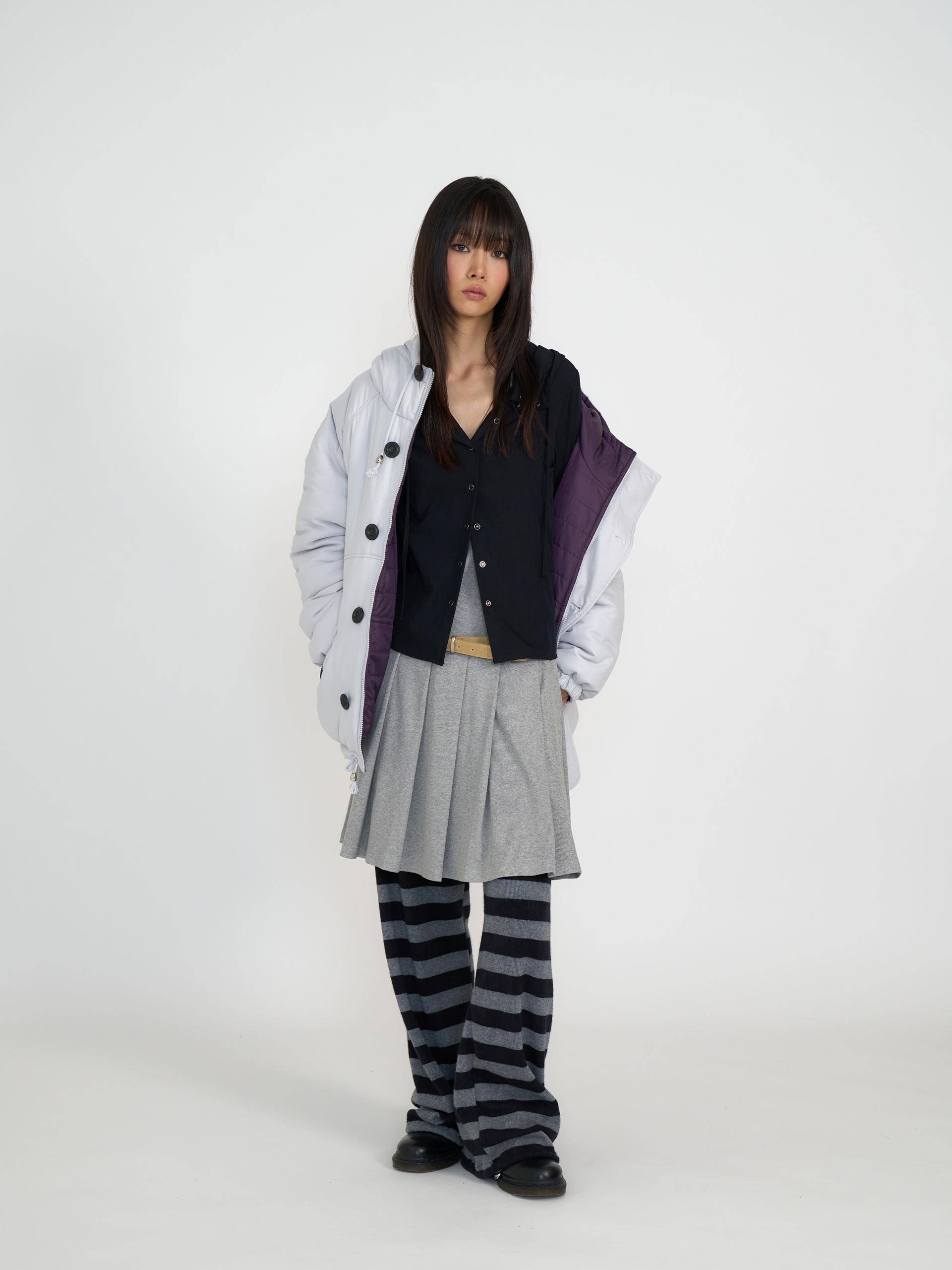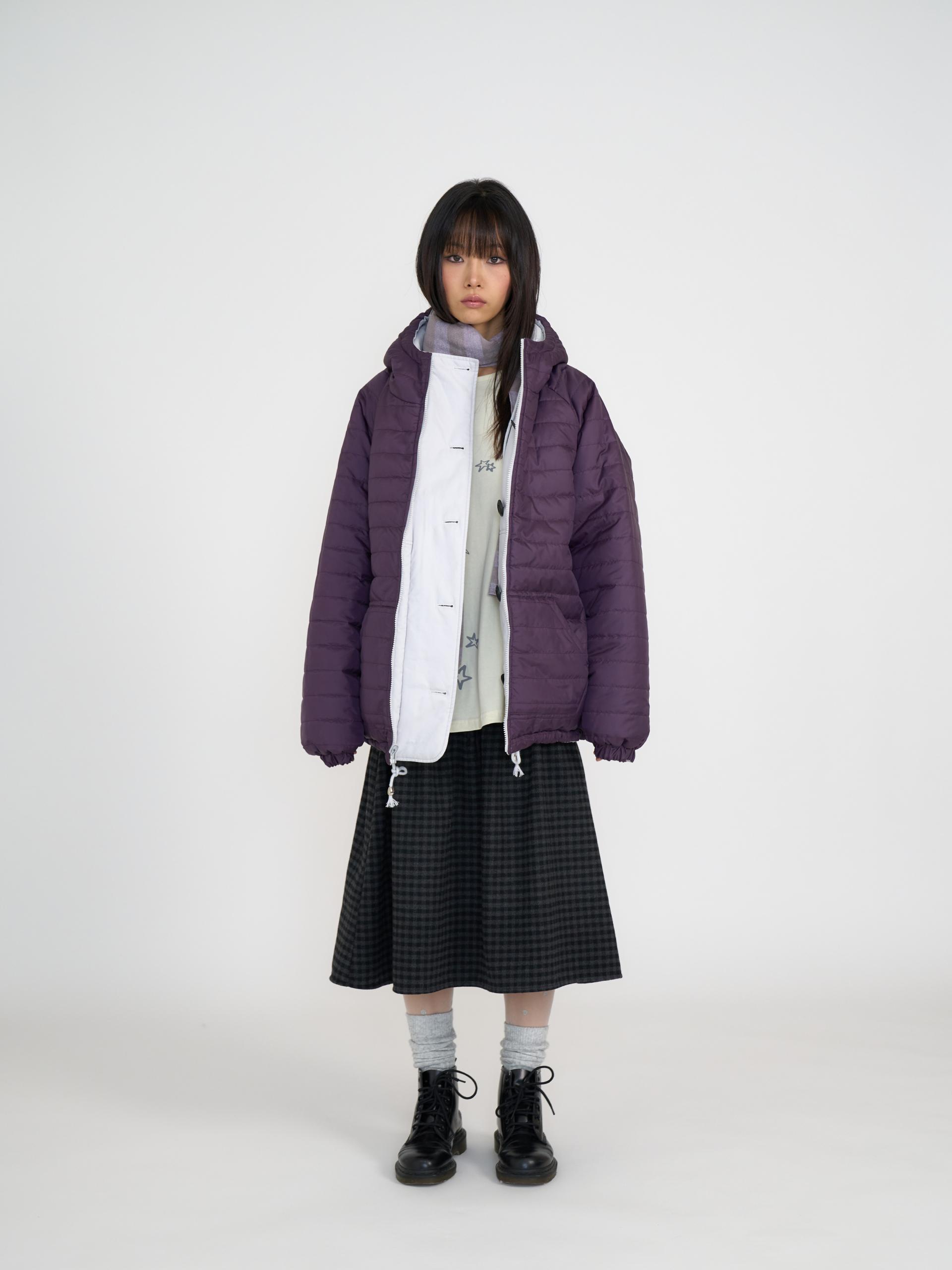 가볍고 보온성이 높은 3M신슐레이트와 3온스 안감 퀼팅을 더해 총 6온스의 두께의 리버서블 아우터입니다. 신슐레이트 소재는 동일두께대비 일반패딩보다 약 3.6배 뛰어난 보온력을 가지고 있으며 물세탁이 가능합니다. 한쪽은 부드러운 원단과 볼드한 단추, 귀여운 포켓 디테일로 캐주얼 무드를, 반대쪽은 발수성 폴리 원단과 스트라이프 퀼팅 디테일로 스포티 무드를 보여줍니다. 두 가지 분위기를 자유롭게 즐길 수 있는 실용적인 아이템으로 라이트 그레이&퍼플, 네이비&스카이블루 두 가지 컬러로 출시되었습니다.
