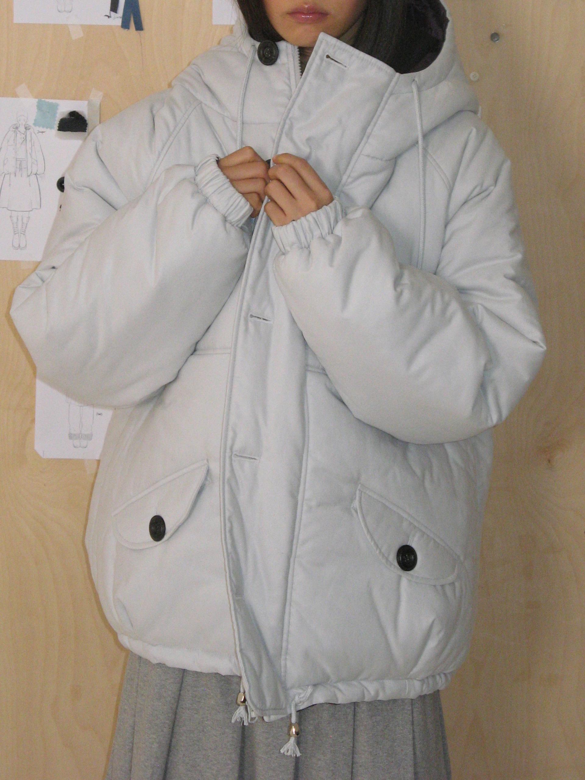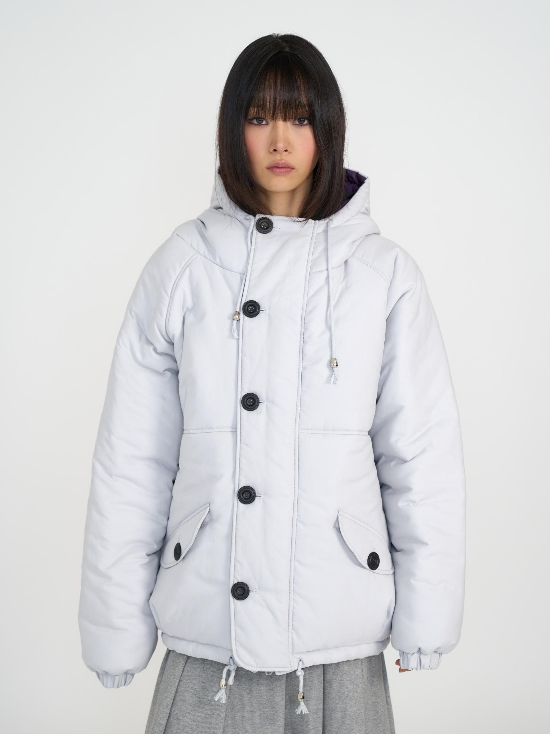 큰 단추 디테일과 오버사이즈 핏의 PUFFY THINSULATE REVERSIBLE JUMPER